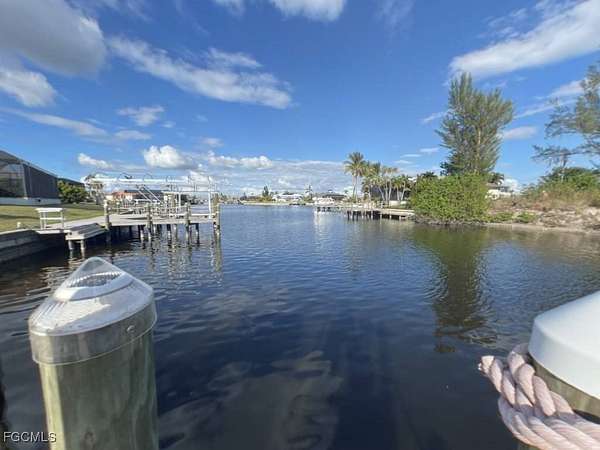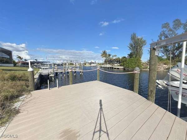 GULF ACCESS lot with 2021 Seawall and 2022 Boat Dock with solar powered 10,000lb boat lift!! This lot has an eastern rear exposure with water view 125' wide Monamink Canal with an expansive view of the Hermosa Canal intersection. Here is your OPPORTUNITY to have a HUGE HEAD START on CUSTOM home construction and AVOID the costly and time-consuming seawall construction process; the hassle of quotes, permitting, the 1.5 yr+ seawall construction and boat dock construction. Store your boat on the dock/lift and enjoy the short 20 minute boat ride to Matlacha pass while you are waiting for construction of your new custom home. This AMAZING lot is accessed from Tropicana Pkwy which is close to Burnt Store Road and Pine Island Road intersection with access to SW Florida's Fresh Seafood, Tropical Fruits, and LOTS of Shopping, Entertainment, Major Restaurants, Medical Facilities, VA Clinic, and only 45 minutes from Fort Myers International Airport. If you are thinking about moving to Florida don't wait-call TODAY to own this AMAZING piece of paradise, enjoy the ABUNDANT sunshine, boating, beaches, boating to waterfront dinning. Take a trip to Cape Coral and explore the MANY reasons why so many people LOVE & call Cape Coral their HOME!