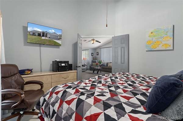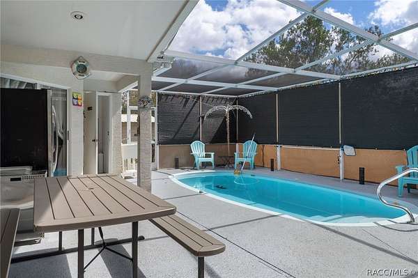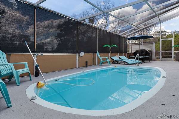 RARE FIND!!!!,,,,,,Does a BEAUTIFULLY MAINTAINED POOL HOME with nearly 3 ACRES of fully usable land and too many fruit trees and vines to mention and NO deed restrictions sound good to you? If it does, than you do NOT want to miss this one! This specatular home features a newer roof and air conditioning system offering peace of mind for years to come. Inside, you will find comfortable living spaces great for both everyday living and entertaining. The owners have fully remodeled with new tile floors, draperies, paint throughout as well as a closet, making the study into a 3rd bedroom. The split floorplan makes having guests a breeze. Step outside to your own backyard retreat with a sparkling pool and half pool bath, terrific for relaxing on warm Florida days. The fully fenced property provides plenty of room for animals, outdoor hobbies and a huge garden. The second and third included properties have so many fruit trees, vines, plants and a NEW garden shed for additional storage, tools, or workshop space. With over two ACRES OF OPEN LAND, this property offers endless possibilities-bring your RV, boat, animals, or build additional structures without restrictive HOA or deed limitations. If your looking for SPACE,FREEDOM,AND A MOVE_IN_READY HOME IN EXCELLENT CONDITION, this property is a rare find indeed. Call today.