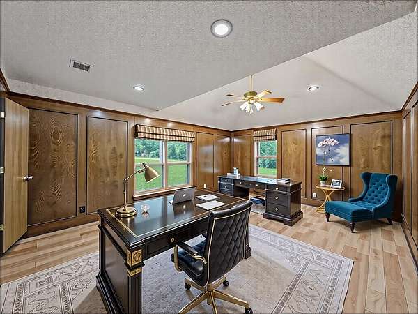 Welcome to 907 Red Oak Creek Drive--a private 1.69-acre oasis where luxury, privacy, and practicality meet. From the moment you arrive, the tree-lined entrance and lush landscaping set the tone for a home designed to impress. The backyard is a showstopper with a sparkling pool (replastered in 2017), poolside bath and changing room, perfect for entertaining or relaxing. The gourmet kitchen boasts granite counters, custom cabinetry, Jenn-Air appliances, a large island, and both formal and casual dining spaces. The primary suite is a retreat in itself--complete with a private sauna, a dedicated yoga room, and direct pool access. The spa-like bath and generous walk-in closets make everyday living feel indulgent. Three additional bedrooms, 4.5 baths, and a 19x14 office provide space for family, guests, and work-from-home needs. Every detail has been thoughtfully maintained, including new roof, gutters, windows, front door, and attic insulation. A full solar system (paid off at closing) adds eco-friendly efficiency and utility savings. The oversized laundry room and abundant built-ins ensure storage is never an issue. Tucked in a peaceful, tree-lined neighborhood yet just minutes from shopping, dining, and top schools, this estate offers the rare combination of a serene retreat with convenient access to town. 907 Red Oak Creek Drive is more than a home--it's a lifestyle.