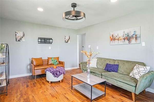 Fully updated 3-bedroom, 1-bath home situated on 4 acres with partial fencing in Osage County. This property has been renovated from top to bottom, including updated electrical, plumbing, windows, kitchen, and bathroom. Interior features hardwood floors throughout and a spacious main bedroom with a large walk-in closet. Exterior improvements include a metal roof, vinyl siding, covered front porch deck, and covered parking. Kitchen is nicely updated with trending features and includes range/oven and dishwasher. Bathroom is completely renovated with new bathtub/shower, new vanity, new fixtures, new flooring, new toilet. The acreage offers a barn, garden area, and plenty of space for outdoor use, animals, or additional improvements. Enjoy scenic Osage County views in a quiet rural setting. Property qualifies for USDA $0 down financing.