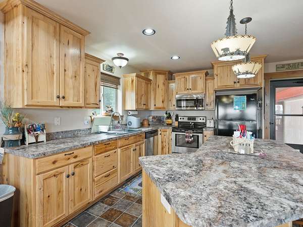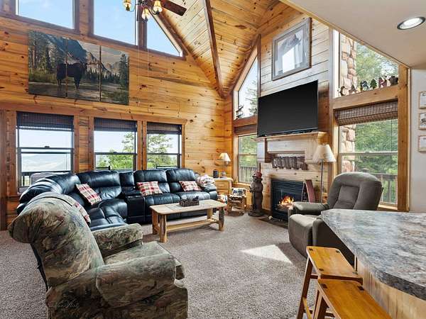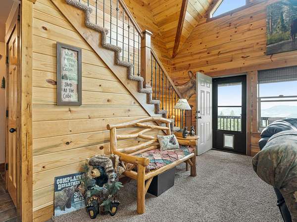 This 5 bedroom 3 bathroom fully furnished Lava Ranch cabin is the ultimate getaway! It sits on 5.75 acres of forested land with mesmerizing views of surrounding mountains, the valley and endless forest. The main level features 2 bedrooms, a bathroom, spacious kitchen, a living room with a fireplace and floor to ceiling windows and access to a covered deck. The upper level has a bedroom, bathroom and bonus room which could be a 6th bedroom. The lower level has two additional bedrooms, a bathroom and is a walkout with access off the family room to the large yard area. Store your toys in the covered garage space. This home has its own well and septic. The community has a stocked fishing pond, pavillions and provides garbage service. Only 15 minutes from the resort town of Lava Hot Springs Idaho, and its World Famous hotpools and Olympic swimming complex. What are you waiting for? Call your favorite agent for you personal tour today. https://media.pokypix.com/9070-Cougar-Rd/idx