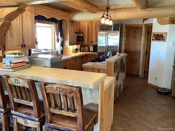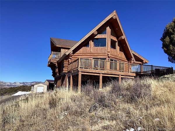The epitome of the Colorado Mountain experience. This stunning full around British Columbia. Log home is situated on 38+ acres with incredible views in every direction for 40 to 50 miles. Located on the east side of the Grand Mesa just 25 minutes from Powderhorn ski area this incredible property backs up to BLM land and Private UTE water Conservancy land and also Thousands of acres of USFS. This purchase also includes private water rights with two shares of Ute water conservancy via a small ditch on the property. There is also a small lake, where elk deer, and all kinds of wildlife water that you can see from the home. The home has soaring ceilings in the living area and master bedroom with incredible views, all around plus a massive wraparound deck off the main level. The master bedroom is also stunning with vaulted ceilings, and two decks facing opposite directions. The other two bedrooms are downstairs with walkouts and there's a two car garage on the lower level. There are a couple outbuildings and also a large storage container that can stay or go. You can literally Hunt from your deck for elk mule, deer, bear mountain lion, and all sorts of small wildlife. Located at the end of the road So there's absolutely no one else that you will see. There is one neighbor several hundred yards away but other than that everything is miles away. If you're looking for the most secluded perfect Colorado Mountain retreat, this is it.