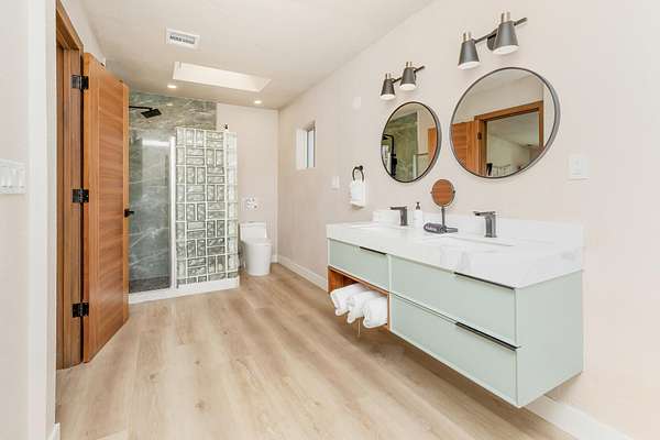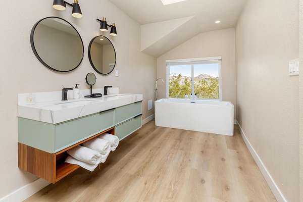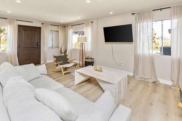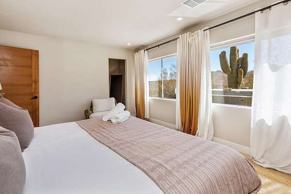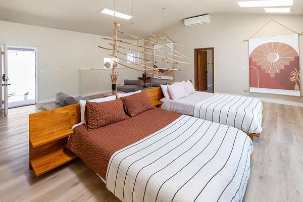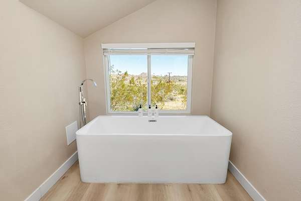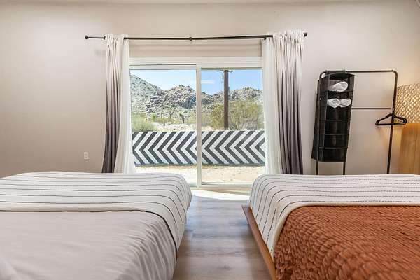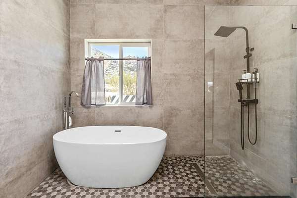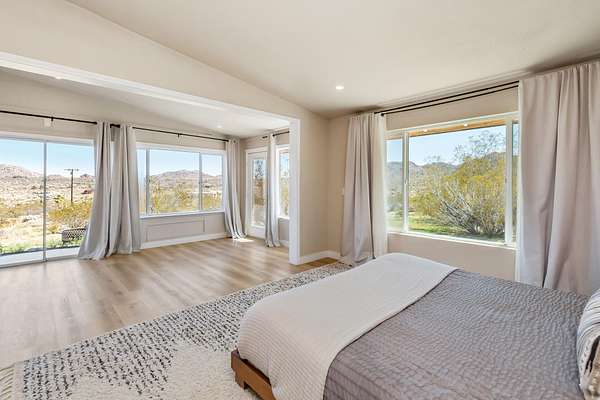 Welcome to 9073 Tortuga Trail, where desert tranquility meets modern comfort in the heart of Joshua Tree, California! Are you looking for a forever home? vacation home? or one with potential rental possiblilities? This is it! Nestled amidst the rugged beauty of the Mojave Desert, close to the entrance of the monument, this captivating property offers a lifestyle of unparalleled serenity and style. Here you will find both home, and extra guest space. The home offers 3 bedrooms, 2 baths, and the converted oversized garage offers additional guest space and a 3rd bathroom, 2538 square feet combined. A hot tub also graces this gorgeous 2.5 acre piece of land. It has been beautifully updated to modern expectations and boasts solar for efficiency, and a new roof. Step into your own desert oasis, where the vast expanse of the landscape becomes your backyard and breathtaking sunsets paint the sky. This meticulously designed home provides ample space for relaxation and entertainment. Escape to the luxurious master suite, where you can unwind in your private sanctuary complete with stunning desert views. Each bedroom offers comfort and privacy, ensuring that every member of the household has their own retreat.Step outside to your patio area, where you can bask in the warmth of the desert sun or stargaze under the vast desert sky from the hot tub.