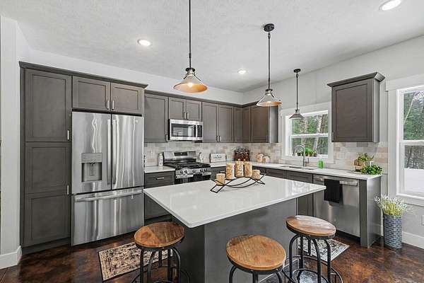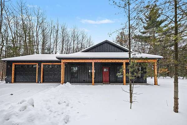Barndominium just South of Turk Lake, Newly Finished ! OPEN HOUSE SAT. FEB 14TH 1:00 TO 3:30. Shingled roof and black steel side walls with sharp red cedar trim. A 34 ft covered front porch just waiting for your Rocking Chairs. Entire building with in floor heat and insulated below the hot water runs with 2 inch foam. Stained concrete floors. Three Mini splits provide AC and additional heat. Upper walls 6 inch construction on a 4 ft frost wall. All one level ! Two Bedrooms and 2 full Baths. Energy efficient lighting, heating and insulations. Quiet close kitchen cabinets. Many other upgrades. HUGE 26 x 40 garage could offer additional living space with heat already there for a big family rec room and entertaining year round. Garage has 8 ft. high doors for taller trucks. Privacy on the 1.6 acre lot with towering trees surrounding. The East boundary is a creek from run off of TURK LAKE. Your family could love this place.