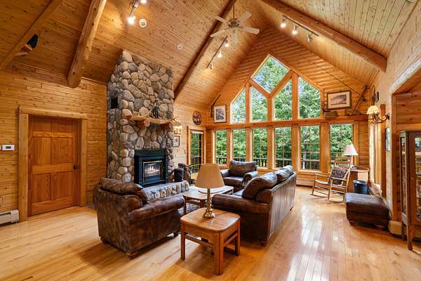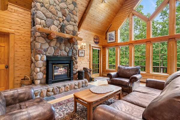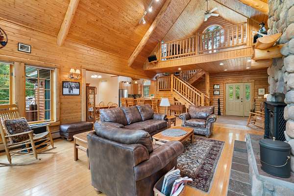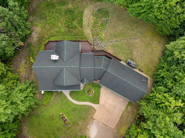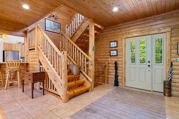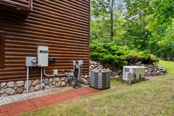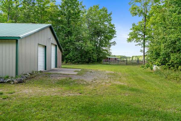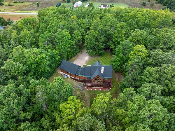Cedar Log Home on 61-Acre Horse Farm. This private retreat is located in the Indian River/Wolverine area. Welcome to this impeccable cedar log home nestled on 61 acres of serene, recreational land-a true private retreat for nature lovers, equestrians, and those seeking peace and privacy. This spacious, cozy, and meticulously maintained residence offers the perfect blend of rustic charm and modern comfort. The main level showcases an open-concept layout framed by floor-to-ceiling windows, seamlessly bringing the outdoors in. Maple hardwood floors, a cultured stone wood-burning fireplace, and six-panel pine doors add timeless elegance. The kitchen, dining, and living areas flow effortlessly togetherideal for both relaxing and entertaining.A beautiful loft overlooks the main living space, offering a quiet escape to take in the breathtaking views of the home and property. The main-floor master suite is designed with both comfort and accessibility in mind, featuring a 36" wide doorway, a luxurious master bath, and a spacious walk-in closet. Unwind after a long day in the jetted tub and enjoy the tranquility that surrounds you. The finished lower level is equally impressive, featuring solid surface flooring throughout, a second bedroom and bathroom, and a versatile craft room ready to be plumbed for hot and cold water. The utility room houses the home's boiler system and water softener. Comfort is year-round with central air conditioning and a whole-house Generac generator. The exterior is finished with cultured stone and a French drain system. The oversized garage includes two overhead doors and an expansive bonus room...perfect for a workshop, studio, home office, or additional storage. Equestrian & Exterior Features: The outdoor amenities of this horse farm are just as impressive. The large pole barn has five doors of varying sizes for easy access and a lean-to with open ends and a side door, ideal for hay storage. The horse barn has three thoughtfully designed stalls and two run-ins with water and electric nearby. Additional equestrian features include four connecting pastures with gates for rotation and flexibility. The paddock and storage shed offer convenience and functionality. The dressage arena has dual-gate entry and nearby electrical access, perfect for training or recreation. This property backs up to hundreds of acres of state land, offering direct access to additional riding trails, hiking, or hunting. The rolling terrain is truly picturesque, providing stunning views in every direction-an absolute slice of paradise. Don't miss out on this impeccible retreat centrally located between Indian River and Wolverine. A great location with an easy compute to Indian River and the surrounding areas.
