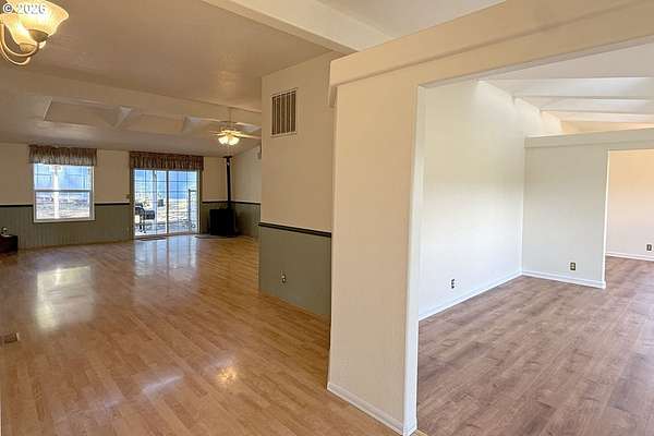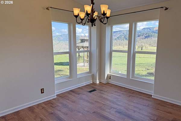 A Prime Country Location just minutes from town, this spacious 3+ bedroom home offers the perfect rural setting with everyday convenience just minutes away! Freshly painted inside and out and topped with a new in 2025 roof, it welcomes you with bright, open living spaces designed for comfort and functionality. The kitchen features an island, walk in pantry, quartz sink, abundant cabinetry, garden window and opens easily into the home's main gathering areas. Picture windows and skylights fill the formal dining room, living room, and large family room with natural light. A pellet stove adds warmth and charm, while sliders lead to a partially covered patio ideal for year round enjoyment. Laminate flooring flows through the living areas, with carpet in the bedrooms. The primary bedroom has double closets and includes a versatile bonus room with sliders to a covered deck-perfect for an office, reading nook, or private retreat. Its en-suite bathroom offers a garden tub, walk in shower, double sinks, and a walk in closet, too! Two forced air heating systems with central air ensure comfort in every season. Nearly every window frames sweeping mountain views overlooking your own fenced pasture. For those who need space to work, create, or store, the property includes a 48' X 36' garage/shop AND a 36' X 24' SECOND SHOP! ideal for a home business, hobbies, recreational vehicles, animals, or a wide range of rural pursuits!