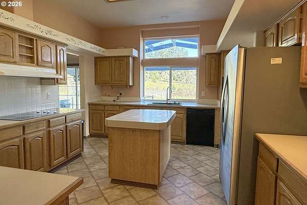 - Builtin Oven, Builtin Range, Cooktop, Dishwasher, Free Standing Refrigerator, Island, Pantry, Tile