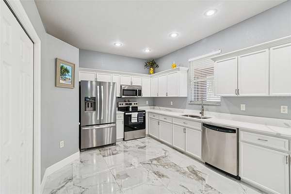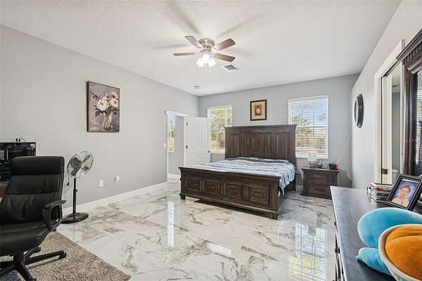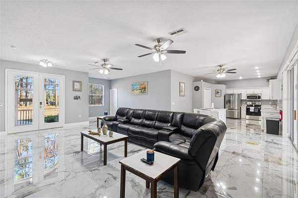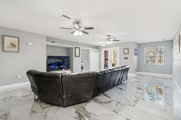 Welcome to a bright, open, and beautifully updated home designed for comfort, privacy, and flexibility. From the moment you step through the double front doors, you're greeted by a spacious, light-filled living area accented by elegant marble tile flooring and an inviting open-concept layout--perfect for both everyday living and entertaining.