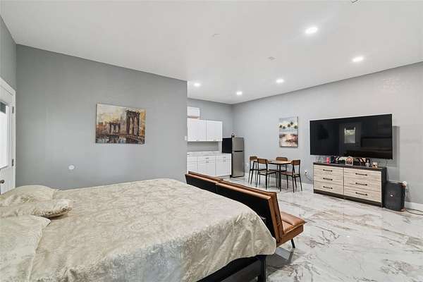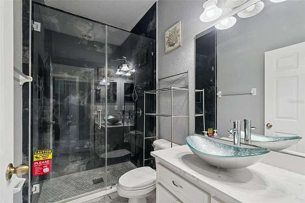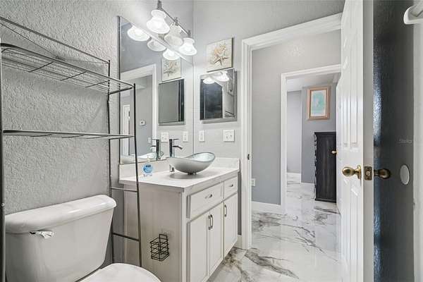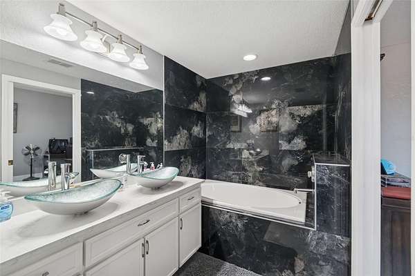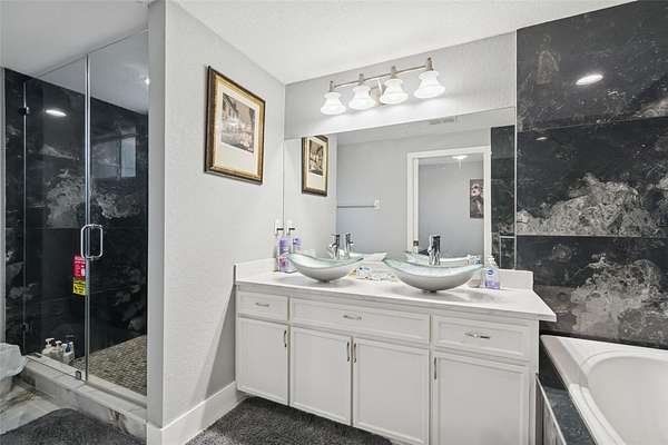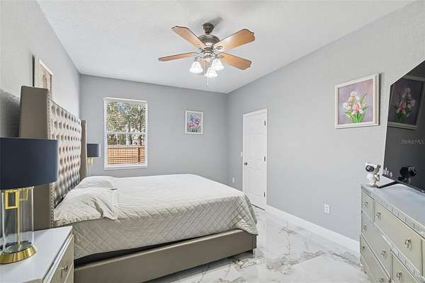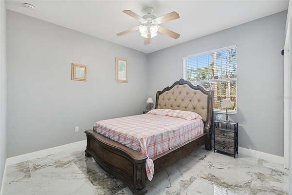 This thoughtfully designed split-bedroom floor plan offers exceptional privacy and versatility, highlighted by two primary suites--an ideal setup for multi-generational living or short-term rental opportunities. The main primary suite is generously sized and includes a large walk-in closet and a recently renovated en suite bathroom with a new basin sink vanity. A comfortably sized secondary bedroom is well positioned for privacy and is conveniently located near another fully remodeled bathroom. Tucked away at the rear of the home, the second primary suite offers its own bathroom and separate exterior entrance, making it perfectly suited for an Airbnb suite or guest retreat.