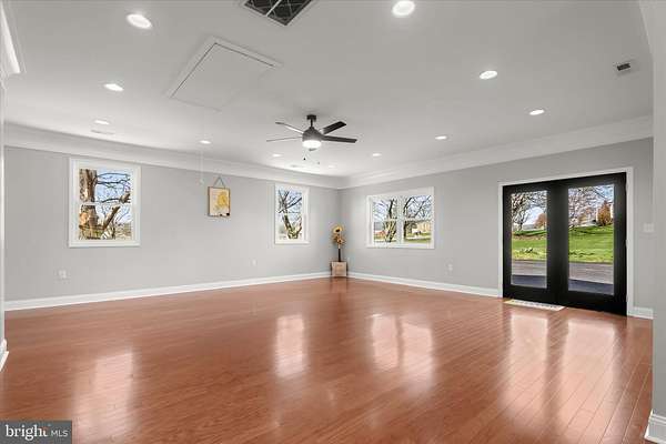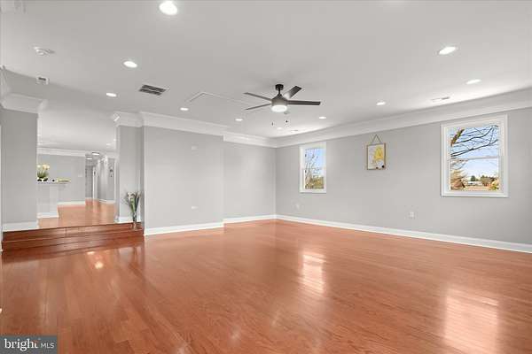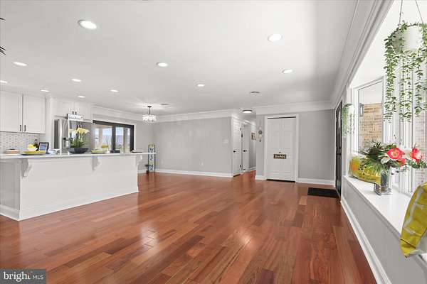 - Bar, Built-Ins, Ceiling Fan(s), Crown Moldings, Dining Area, Eat-In Kitchen, Entry Level Bedroom, Family Room Off Kitchen, Gourmet Kitchen, Open Floor Plan, Primary Bath(s), Recessed Lighting, Tub Shower Bathroom, Upgraded Countertops, Walk-In Shower Bathroom, Wood Floors, Wood Stove