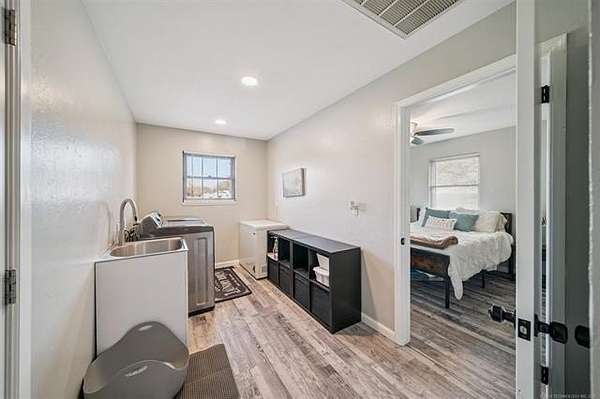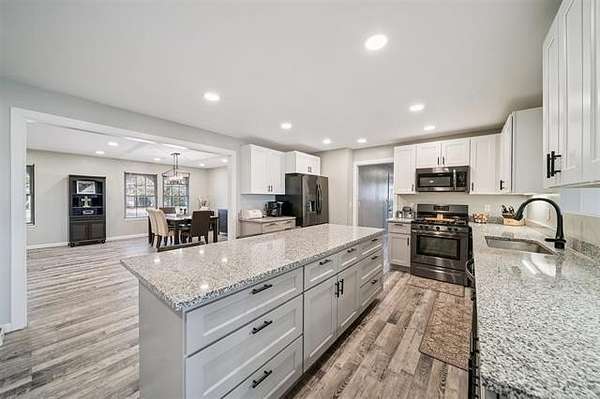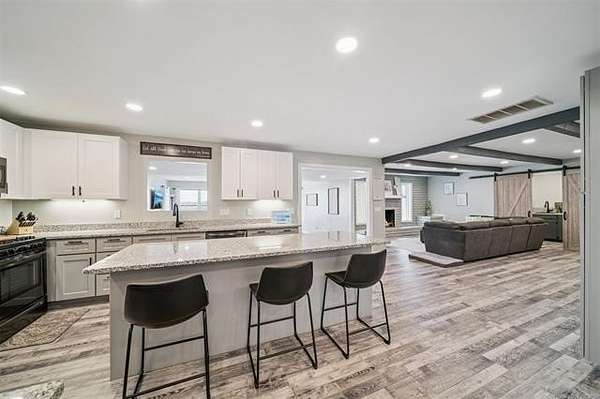 Beautifully updated 5-bedroom, 3-bath home on 16 acres, featuring an extensive near full remodel completed in 2022. Updates include a completely new kitchen with modern appliances, luxury vinyl flooring, fresh wall texturing and interior paint, upgraded bathroom fixtures, new electrical with recessed lighting throughout, and new septic lines. A new city water line was also installed in 2022, and the exterior received fresh paint in 2023.