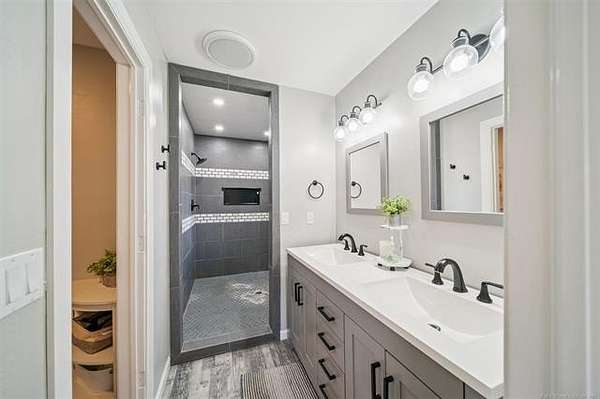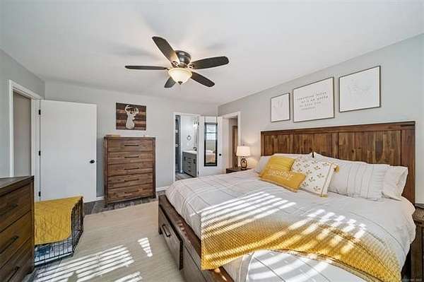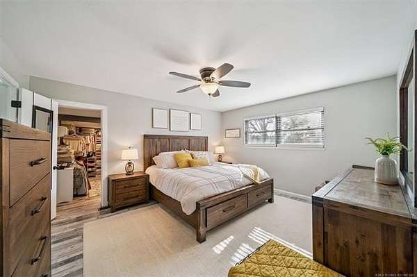 The renovated primary suite offers a redesigned bathroom layout with a tiled dual-head walk-in shower, a large walk-in closet, and additional storage. The property is perfectly set up for outdoor living, with all cedars cleared behind the home, a 60'x60' garden with raised beds and a 6' fence, a chicken coop and run, a treehouse, and a welcoming front-yard fire pit. The porte-cochere drive-through front porch adds charm and convenience, and high-speed internet is available with a dedicated line to the home office for direct connection.