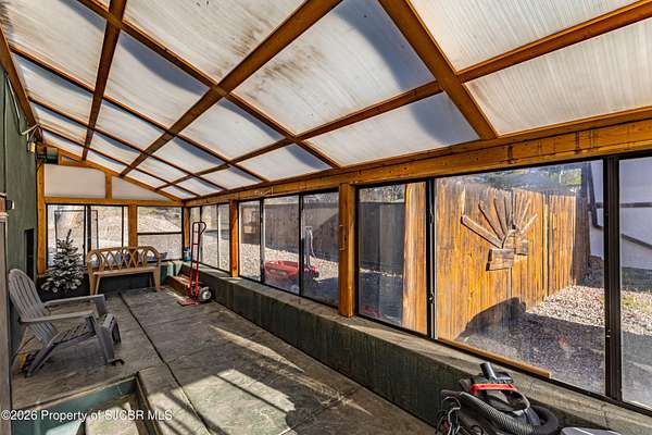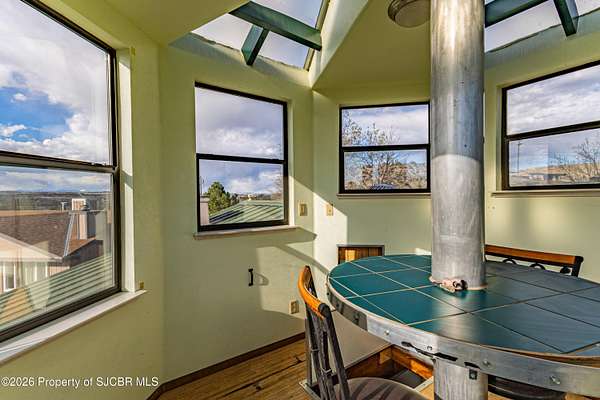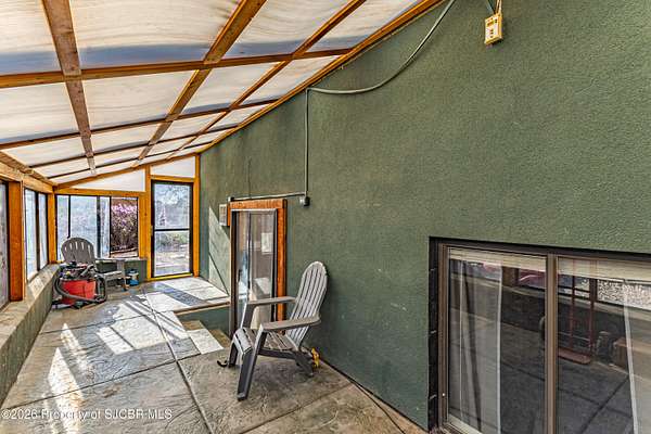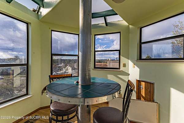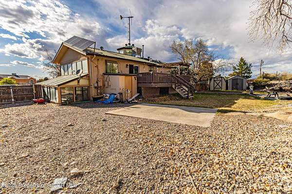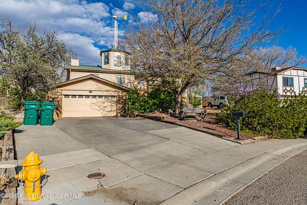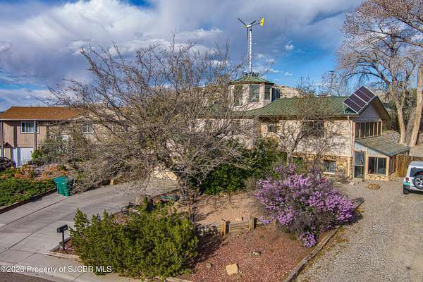 Energy efficiency meets unique architecture on 2 private acres--featuring solar design, geothermal cooling, and a one of a kind observation tower! This unique 2,640 sq ft split-level home is located in a quiet cul-de-sac and offers both passive and active solar systems, including a Trombe wall, geothermalcooling, a brand new pellet stove, and a new furnace for year-round efficiency. This home features 4 bedrooms and 3bathrooms, along with two spacious living areas, a bright sunroom, and an updated kitchen with appliances less than fiveyears old. The remodeled primary suite includes a new walk-in closet, creating a comfortable and functional retreat. Recentimprovements include new flooring throughout, updated bathrooms, new stucco exterior, and a newer water heater.Outside, enjoy a large back deck, private animal yard, two storage sheds, and RV access with a 50-amp electrichookup. The 2-car garage will feature a new garage door in May. A rare property combining energy-conscious living,modern updates, and room to spread out in a peaceful cul-de-sac setting.