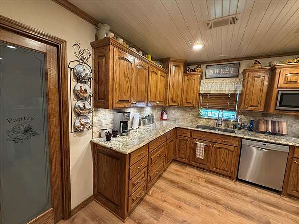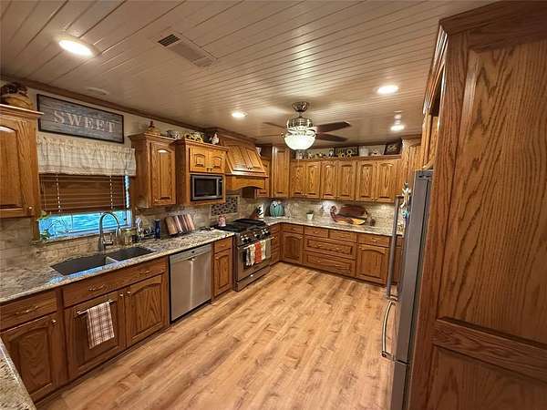 Nestled on nearly two acres of beautifully maintained grounds, this inviting 3-bedroom, 2.5-bath home offers the perfect blend of comfort, functionality, and rural charm. Step inside to discover two spacious living areas, ideal for entertaining or relaxing by the cozy wood-burning fireplace. The heart of the home features granite countertops, a KitchenAid gas cooktop an electric oven, on demand hot water, dishwasher, pantry, exceptional cabinetry, all you need to add is the cook so that you can be ready for all your family gatherings. Recent upgrades include new plumbing throughout, ensuring peace of mind and modern convenience. Outside, the property shines with mature trees, lush landscaping, and ample space to roam. This property has a water well for your yard, garden and greenhouse, RV cover and storage buildings for all your tools and toys. This is a place where you can truly spread out, breathe deep, and make lasting memories. This home was designed for living and crafted for comfort. Schedule your private showing today and see the full potential this home offers!
