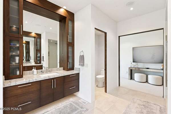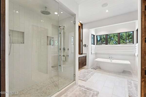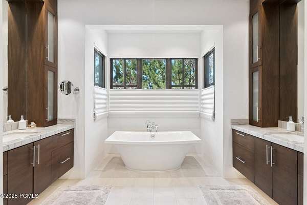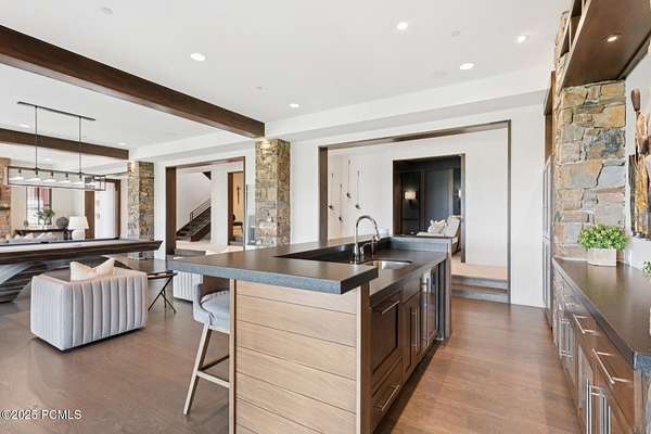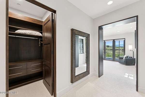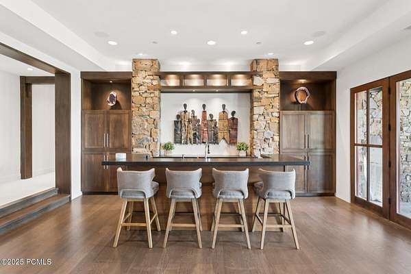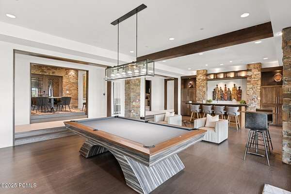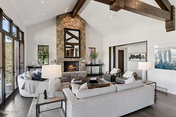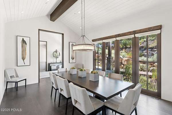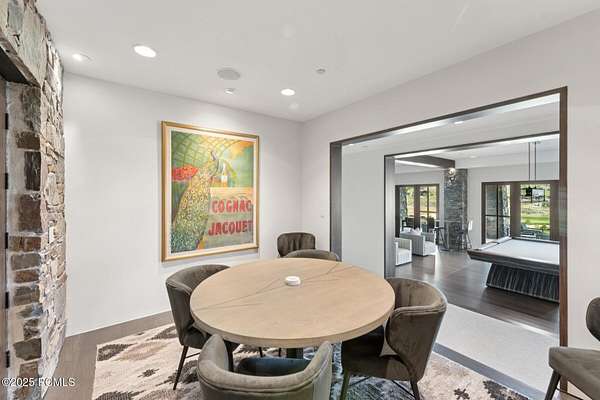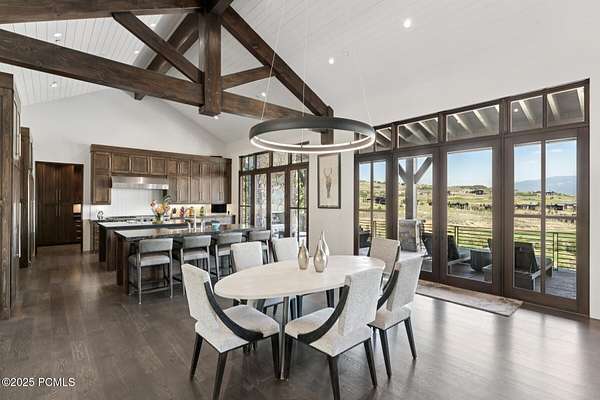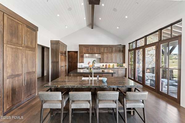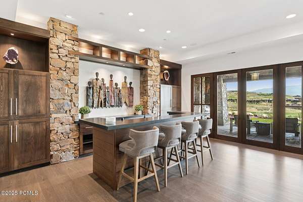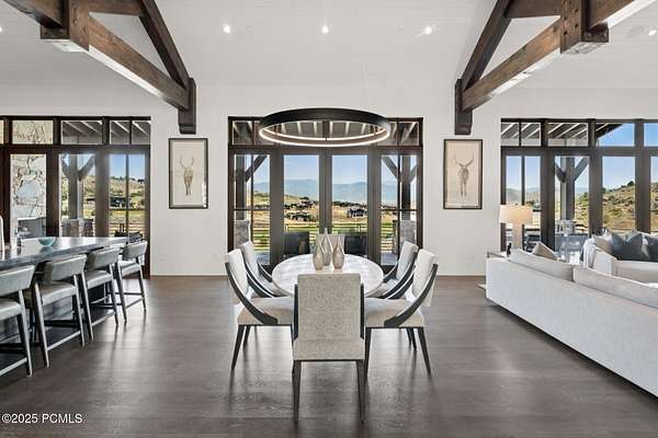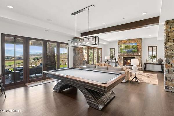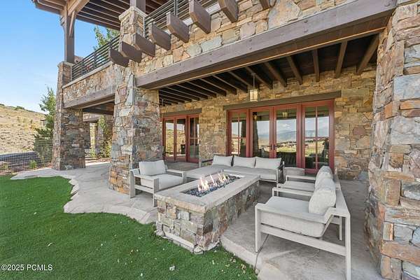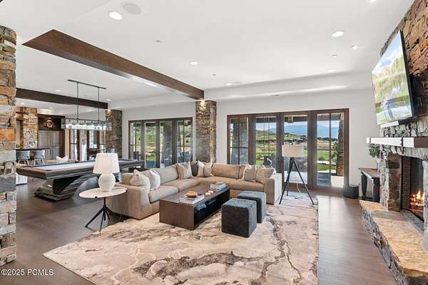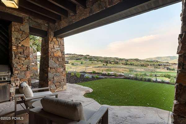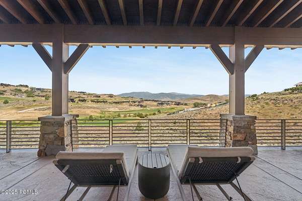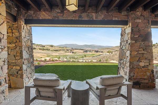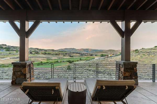 Welcome to 9080 North Uinta Drive. Sitting majestically above the back nine of the Mark O'Meara signature golf course, on two, very private and attractively landscaped lots, with expansive views overlooking the rolling hills and emerald green fairways, while extending out to the awe-inspiring Uinta Mountains. Privacy, Peace & Serenity will capture your soul. Experience fabulous and visually stimulating views spanning from the expectant morning sun cresting the Uinta Mountains, to the frequent orange-red-purple bands emanating from the evening sunsets dropping behind the Wasatch Back. Welcome the privacy and be mesmerized by the tranquility that's refreshingly peaceful and quiet. What you can expect: Comfortable, casual elegance, with hints of modern design, decorated with the assistance of Barclay Butera. The functional 9,000 sf floor plan showcases vaulted ceilings, intricate beams & stonework, and an abundance of natural light, creating refined and inviting living spaces. Five bedrooms ensuite, 2 half baths, 5 fireplaces, chef's kitchen, formal & informal dining, a dedicated office, 2 laundry rooms, wine cellar, theater room, and backyard firebox make this home an ideal gathering spot for family & friends. The home was thoughtfully designed, with seamless indoor/outdoor living top-of-mind. The back patio is a sanctuary in and of itself. Very serene . Fabulous views. Extensively landscaped with a two-tier rock wall. Extend a path down to the golf course and short game practice green for even more fun. The primary bedroom is very inviting, with dual closets/dressing areas and views. The luxurious bathroom features dual vanities, a fabulous, oversized shower & a large soaking tub. The guest master is equally as nice. The lower level includes 3 tastefully decorated ensuite bedrooms, a huge family room with an abundance of comfortable seating, a custom built Olhausen 9ft pool table, a wet bar, theater room, wine cellar, and laundry room.