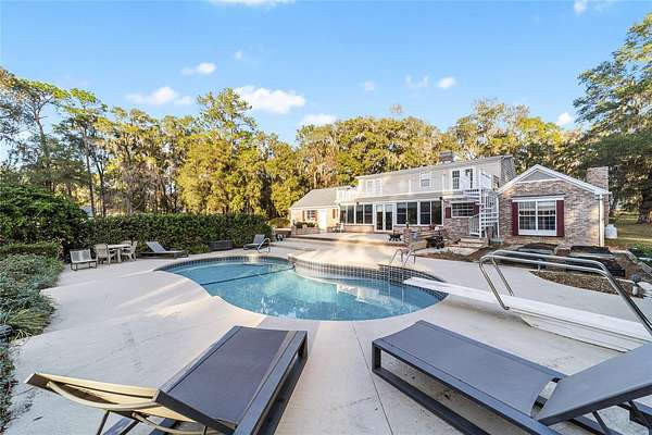 The multi-story 3BR/2.5 bath pool home offers high ceilings, abundant natural light, and an open layout. The main living area features a cozy fireplace and flows seamlessly into the well-appointed kitchen with stainless steel appliances, ample cabinetry, tiled backsplash, under-cabinet lighting, center island, and pass-through window to the sunroom--perfect for entertaining. The formal dining area includes beautiful built-in shelving. New Roof less than 2 years old, new AC in upstairs of main home.