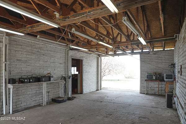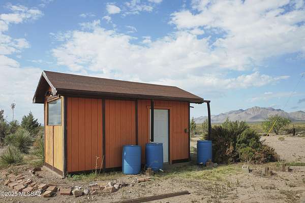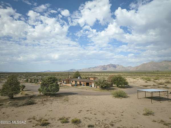 This charming burnt adobe single-family home sits in the wide-open San Simon Valley, just southeast of Portal, AZ, and Rodeo, NM. Enjoy 360 degrees mountain views, brilliant dark night skies, and quick access to outdoor recreation. The home rests on a raised concrete slab foundation with a spacious attached workshop/garage addition-perfect for auto repair, projects, or hobbies. Parking Spots- 2 in garage, 2 under carport. Inside, you'll find versatile spaces: spare room for an office, crafts, or library; fireplace in the second bedroom. Tile flooring throughout home and ample storage space in the kitchen with walk in pantry. The lot perimeter is fenced. RU-4 zoning / dividable lot. and just 1/4 mile of dirt road to blacktop. Only 4 miles to Rodeo and 16 miles to world-renowned Cave Creek Canyo