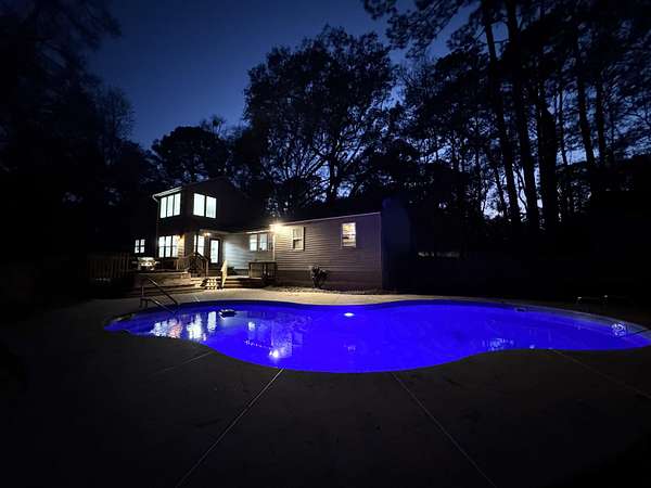Welcome to 9084 Ravena Rd, a custom-built home that stands apart from everything else on the market. This 4-bedroom, 2.5-bath pool home offers 2,288 square feet of living space on a private lot, with character and details you simply won't find in a typical home. As you walk in, you're greeted by soaring two-story ceilings, warm wood floors, and a layout that immediately feels open and inviting. The kitchen has been updated with brand-new appliances, custom cabinetry, and a one-of-a-kind island made from a reclaimed Panama City bowling alley lane. The living room is the heart of the home, featuring reclaimed wood beams from the historic St. Marks Lighthouse and a double-sided fireplace with custom mosaic work. It's a space that feels both unique and comfortable, perfect for everyday living or gathering with friends and family. The primary bedroom is located downstairs and has been fully updated with navy cabinets, wood countertops, a walk-in shower, and a deep soaking tub. Upstairs, you'll find a loft, three additional bedrooms, and a full bathroom, giving you flexibility for guests, kids, or working from home. Outside, the setting is quiet and private, with mature landscaping and fruit trees that produce lemons and tangerines every summer. There's a front pergola that's perfect for relaxing, and the pool has a brand-new liner, ready to enjoy. This is the kind of home that feels different the moment you walk in. Not cookie-cutter, not predictable, just a well-built home with personality and warmth.