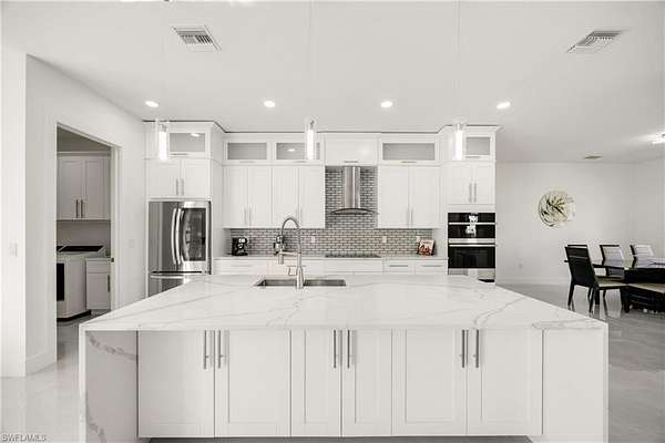 MOTIVATED SELLER! PRICE REDUCTION OF $100,000! YOUR DREAM HOME AWAITS! Welcome to a rare opportunity to own an impeccably designed Luxury home that blends timeless elegance with modern sophistication. Just minutes to Collier Boulevard, shopping and dining. NO HOA'S OR RESTRICTIONS, 100% UPLAND, AND A ONE YEAR HOME WARRANTY! Built in 2023, this beautifully appointed 3 spacious Bedrooms with custom built closets, Den, and 3 elegant full Bath Estate offers 2,514 square feet of thoughtfully designed living space and is nestled on 2.34 fully fenced acres with an electric private front gate, paver driveway, and professional landscaping. When stepping inside you are greeted by porcelain tile floors throughout, spacious living and dining areas, soaring high ceilings, new modern window shades, and an open concept layout ideal for modern living. The Gourmet kitchen features Quartz countertops, Induction cooktop, an abundance of cabinet space, and wall oven and microwave. The oversized kitchen island is perfect for culinary enthusiasts, while the Reverse Osmosis system ensures purified clean water to enhance the cooking experience. Retreat to the spacious Lanai for year-round outdoor living, surrounded by Endless possibilities. Additional highlights include an Irrigation system, Underground gutter spouts, an Epoxy-finished 2 car garage floor, and Storm Impact windows and doors. This home seamlessly blends Comfort, Efficiency, and Elegance to enjoy Luxury living with privacy and space.