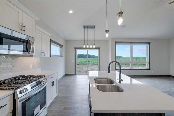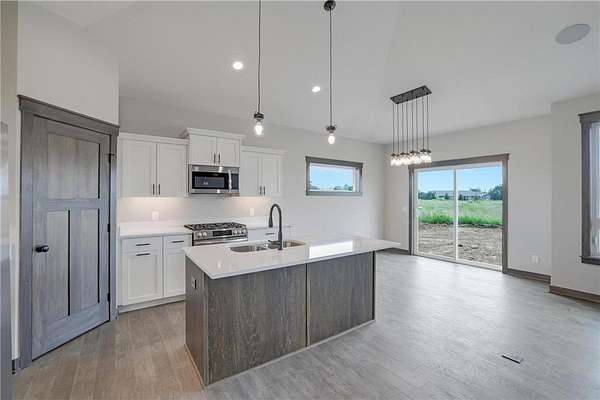 Discover the exquisite Aspen Rambler by Eternity Homes, where your dream of luxurious one-level living comes to life! Imagine stepping into a spacious primary suite that boasts its own private bathroom, featuring a stunning tile shower w/ dual shower heads and double sinks. This suite seamlessly connects to an expansive walk-in closet and conveniently leads into the main-floor laundry room--everything you need for comfort and convenience. But that's just the beginning! The open concept living area invites you to a beautifully designed kitchen equipped with high-end custom cabinets and elegant quartz countertops. Picture hosting dinner parties in the bumped-out vaulted dining area, a sophisticated space that will impress your guests and elevate your entertaining experience. And don't forget the vaulted living area, complete with a cozy electric fireplace, perfect for creating cherished memories with loved ones. The lower level is a true gem, fully finished and ready for your enjoyment. With a stylish wet bar and a large entertaining room, it's the perfect space for fun and relaxation. With 4 spacious bedrooms and 3 well-appointed bathrooms, this thoughtfully designed floor plan caters to your every need and desire. And let's not overlook the oversized FOUR CAR garage that will undoubtedly impress! It's an ideal haven for hunters, car enthusiasts, golfers, and hobbyists of all kinds. Don't miss out on the opportunity to call the Aspen Rambler your home--where elegance meets functionality in a space designed for modern living. Act now and elevate your lifestyle today!