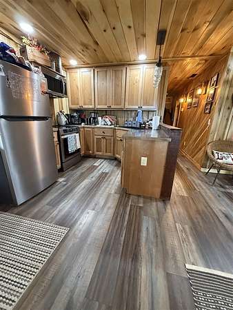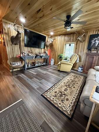 Charming Custom Cabin on 84 Acres – Hart County, KY Escape to the peace and privacy of rural Hart County with this beautiful custom-built 2 bedroom, 1.5 bath cabin nestled on 84 scenic acres. Featuring warm yellow poplar and cedar walls and ceilings, this home offers a rustic yet comfortable feel that perfectly complements its natural surroundings. Enjoy your morning coffee or evening sunsets from the spacious covered deck that wraps around two sides of the cabin—ideal for taking in the abundant wildlife and serene views. The land offers a versatile mix of open pasture and scattered woods, making it perfect for a variety of uses. Whether you're looking to establish a livestock operation, cut hay, or create your own hunting retreat, this property delivers. Additional features include partial fencing, a pond, and a barn equipped with electricity. With road frontage on two sides, access is convenient while still maintaining a private, country setting. This is a rare opportunity to own a multi-use property with both recreational and agricultural potential—don’t miss your chance to make it yours!