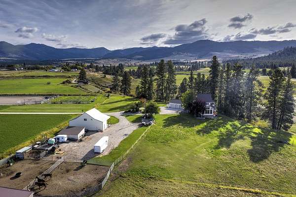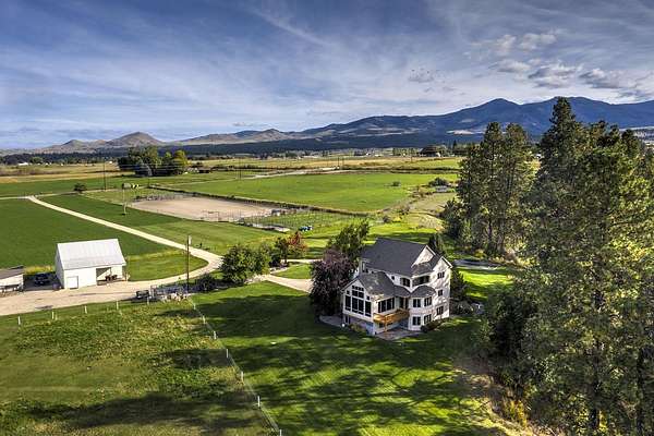 Montana Ranch/Farm & view property. This immaculate Corvallis property is well-maintained & has everything! Amazing views, creek, acreage, ideal & ready for your horses, cows, or critters! Irrigation & privacy with a nice, workable barn/tackshop, bunkroom, & good irrigated ground. 3 bedrooms ( + bonus room), 3.5 bathrooms, nice office, family room, large open & light kitchen, dining, fabulous & comfortable great room with mesmerizing Bitterroot Mountain views. The kitchen is spacious and set-up for your cooking enjoyment, with a nice pantry & workable space. This property is perfect for gatherings with its great outdoor space and decks. Enjoy the large den/game room that is certain to be a fun place for all. This property is located close to the Calf Creek Elk Range! Explore the many mountain trails, fishing, hiking, riding, & all the seasons western living in the area offers for the outdoor enthusiast. This exceptional property is a must-see and worth appreciating. Incredible panoramic views of the Bitterroot, creek, and parklike setting. Lots of storage space throughout the home. Note: All Bedrooms are upstairs or downstairs. No bedrooms on the main floor. The home is true to its age but in excellent, clean condition. Den is on the lower level. Showings by appointment only.