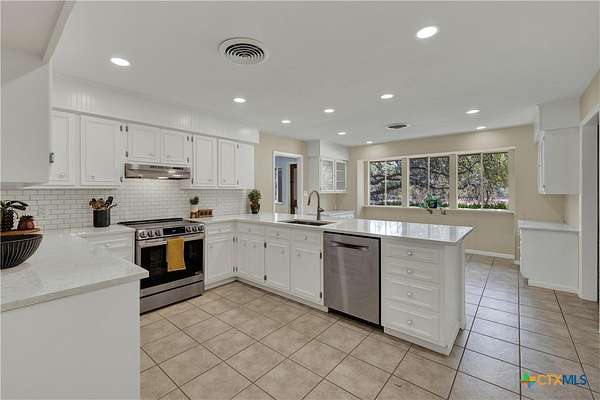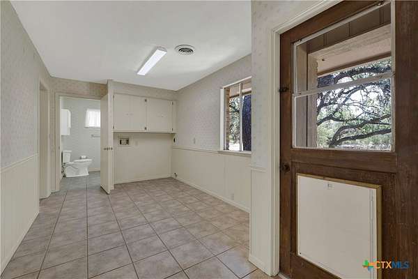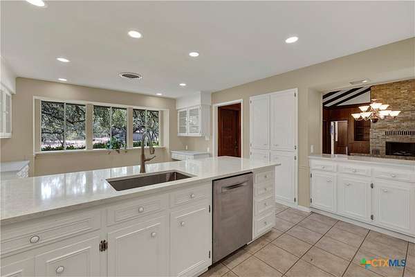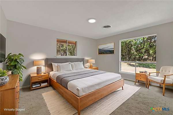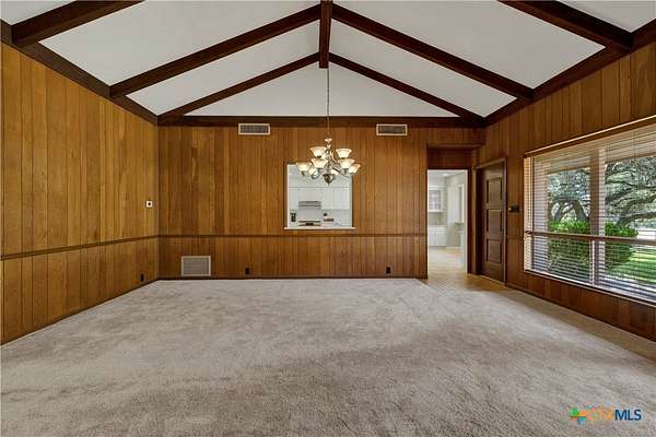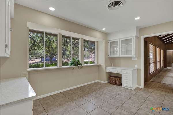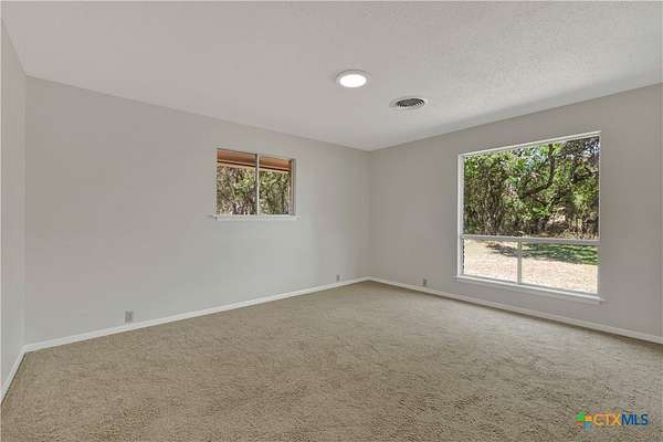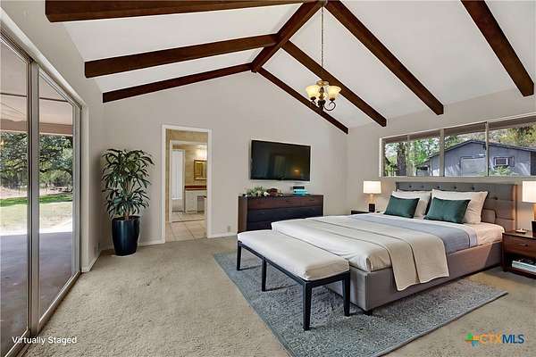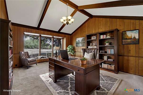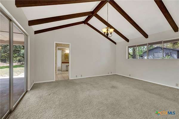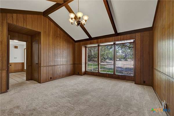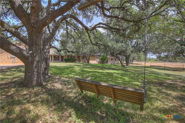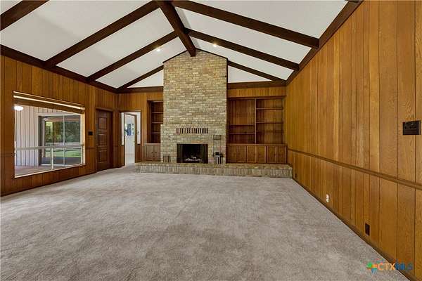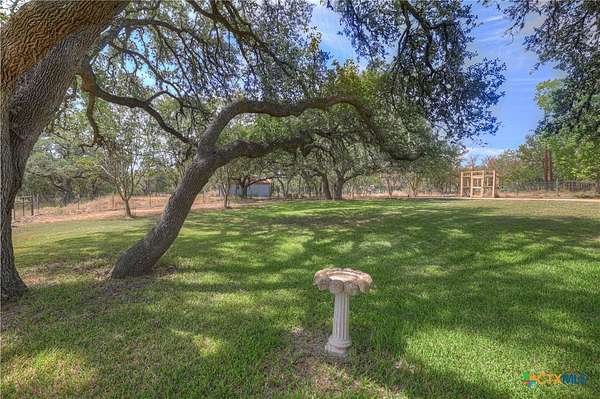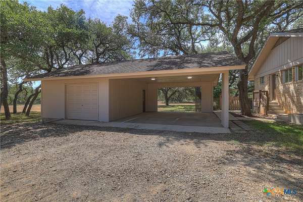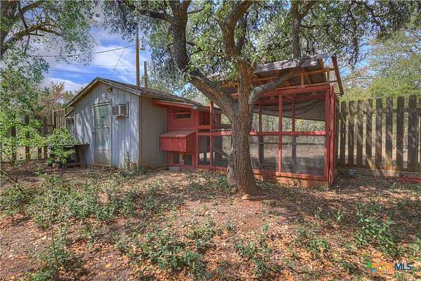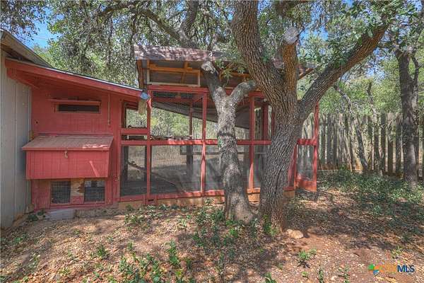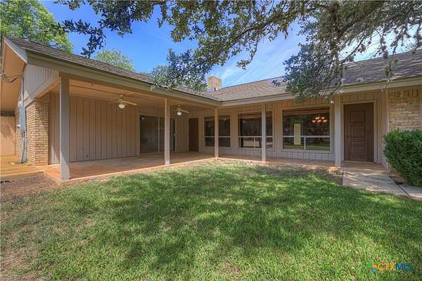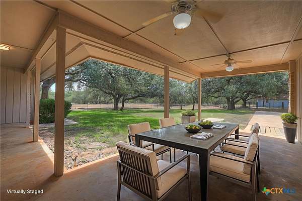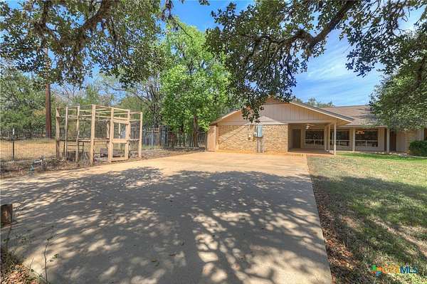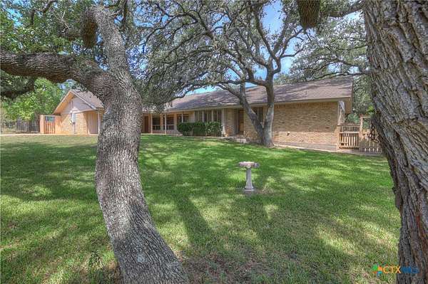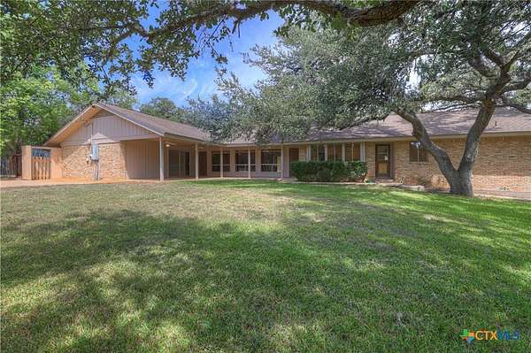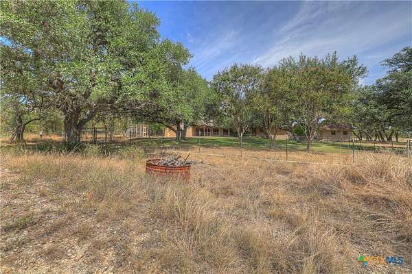 Significant Price Improvement! Beautifully set on 3.42 acres in the hidden gem neighborhood of Country Estates, this one-owner, custom-built ranch-style brick home offers space, character, and convenience. At 3,540 square feet, the property features 4 bedrooms, 3 bathrooms, and a large 368-square-foot game room on its own wing-ideal for a guest or in-law suite with a full bath nearby. Inside, the expansive 570-square-foot living/dining room features a dramatic floor-to-ceiling brick wood-burning fireplace with built-in bookshelves. Vaulted and beamed ceilings in the living area, office, and primary suite create an open and inviting feel. Authentic mid-century wood paneling adds character, while expansive windows bring in natural light and views of the tree-covered yard. The primary suite opens directly to the covered back porch for easy indoor-outdoor living. The property provides exceptional storage, multiple workshop spaces, a fenced backyard, and a side yard with chicken coop. A slab once used as a sport court could be reimagined for recreation or entertaining. Additional highlights include an insulated well house and flexible outbuildings for storage or hobbies. Detached oversized one-car garage and two car covered carport. Country living meets convenience with a low county tax rate, just 3 miles from HEB and minutes from Texas State University. Residents can also join the neighborhood recreation association for pool and tennis access with a minimal yearly fee. This property is ideal for those who want space, privacy, and the charm of the Hill Country-without sacrificing proximity to the benefits of in-town living.