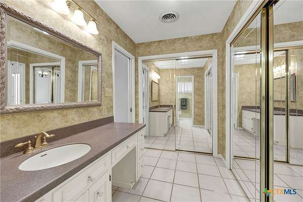 - Beamed Ceilings, Bookcases, Breakfast Area, Breakfast Bar, Ceiling Fans, Double Vanity, Entrance Foyer, High Ceilings, Home Office, Multiple Closets, Multiple Dining Areas, Multiple Living Areas, Natural Woodwork, Pull Down Attic Stairs, Recessed Lighting, Separate Formal Dining Room, Solid Surface Counters, Vaulted Ceilings