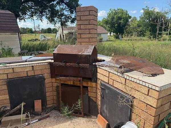 Welcome to 909 Railroad, a unique opportunity to own a slice of small-town Texas on 5 spacious acres. This 3-bedroom, 2-bath home is full of character and ready for your personal touch. Inside, you'll find a large laundry room with a sink, a rare basement room, and a floored attic for extra storage or creative use. The home is plumbed for gas and includes a refrigerator and dishwasher. Step outside to enjoy the outdoor kitchen and three separate outbuildings perfect for projects, storage, or hobby use. Whether you're looking for your first home, a fixer-upper, or an investment property, this one is full of potential. So much life has been lived here and now it's your turn.