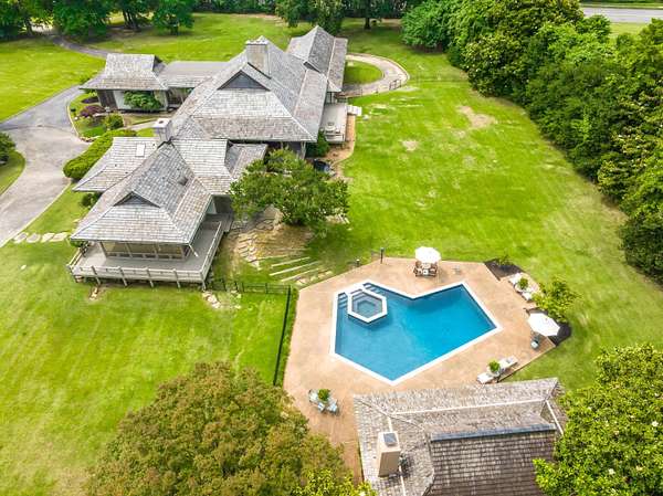 Complete privacy on this 4.3 AC property. Home offers vast living space on one floor and architecture inspired by the Katsura Imperial Villa in Kyoto, Japan. The house has 6 bedrooms, 6 en-suite bathrooms, three-car carport accessed via a loop driveway, a new cedar shake roof, Wide plank hardwood flooring, 5 fireplaces, Tea House for enjoyment by the pool, 2 Entrances off of Shady Grove. Seller has subdivided property into 2 parcels, Parcel 2- 2.3ac future development. Parcel 1.9ac house. This iconic Estate is located at a prominent address in East Memphis, the home is close to the city's most important business addresses. This home was inspired by one of the masterpieces of world architecture, THE IMPERIAL VILLA IN KYOTO, JAPAN. It is suffused with natural light & perfectly integrated into its setting, the house captures the essence of Katura. 909 Shady Grove Rd is effortlessly elegant. Bruno Tout put it perfectly " If one stays there for 3 days its architecture after 3 days poetry