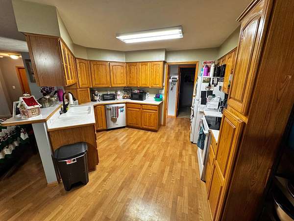 OPEN HOUSE JANUARY 10th 10AM-12PM No Showings prior to January 10th please plan to attend the open house. This property offers a well-located rural residential setting on a large 2.504+- acre lot (per Buffalo County Assessor), just outside Kearney. The home includes four bedrooms and three full bathrooms, providing a functional layout with ample living space both inside and out. The home includes approximately 1,564 square feet of living space and is situated on a spacious acreage with room for a variety of potential uses. The main level features three bedrooms, including a primary bedroom with an ensuite bathroom, his-and-her sinks, tub/shower, and walk-in closet. A second full bathroom with tub/shower serves the additional main-floor bedrooms. The home also includes a two-car attached garage. A natural gas fireplace is located in the main living area (maintenance needed). The basement offers a large living area, abundant storage, and an additional bedroom and full bathroom with tub/shower. Additional features include underground sprinklers, a domestic well, septic system, multiple exterior hydrants (some non-operational). Tenant owned and Not Included are basketball backboard and rim, carpeted in the main living room, window treatments, washer and dryer, and a microwave. This property is currently leased month to month with a rent of $1,600/month.