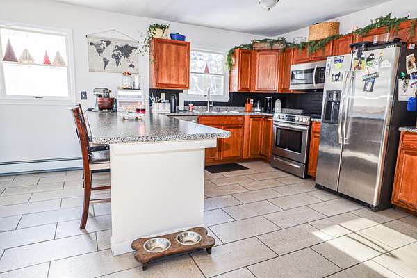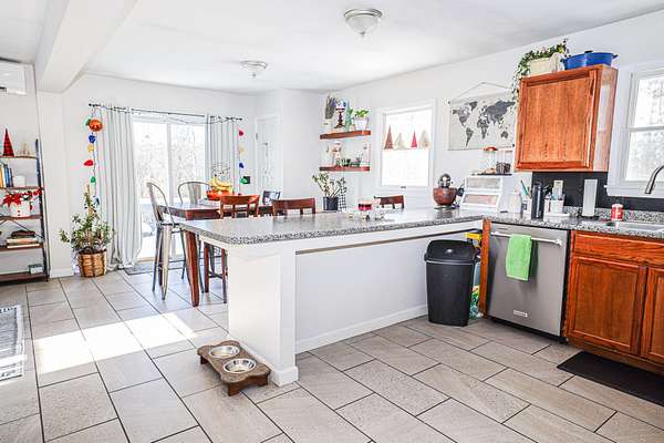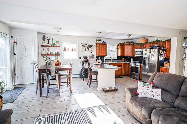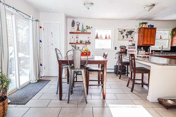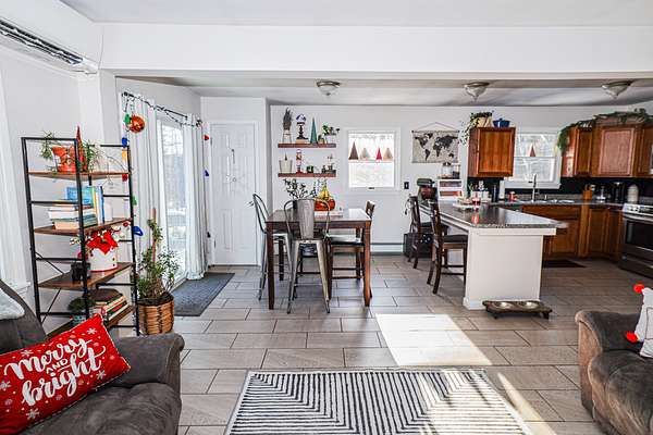 Welcome to 91 Airport Road in Andover, Maine an inviting and well maintained home set in one of the state's most scenic outdoor recreation areas. This comfortable 3-bedroom, 1-bath property offers a spacious open-concept layout that connects the kitchen, dining, and living areas, creating a bright and functional space ideal for everyday living. The home was thoughtfully renovated in 2017, including updated kitchen cabinets, countertops, and flooring, giving the interior a clean and modern feel. A large sliding door off the dining area opens to a generous back deck overlooking a peaceful, wooded backyard perfect for relaxing, entertaining, or enjoying the surrounding nature. The full, finished basement provides additional living space, storage, or recreational options. Ongoing improvements have kept the property in excellent condition. The result is a turn-key home that has been consistently cared for and lightly updated over time. Outdoor enthusiasts will love the location. The property offers easy access to nearby snowmobile and ATV trails, is just A 1/2 mile from the iconic Lovejoy Covered Bridge and local swimming area, approximately 6 miles from the Appalachian Trail, and only 18 miles to Sunday River Ski Resort.