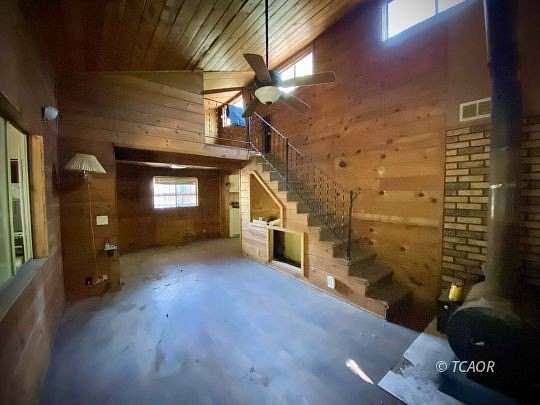 - Carpet Wood, Vaulted Ceilings, Ceiling Fan(s), Wood Stove, Flooring Flooring