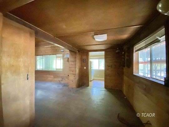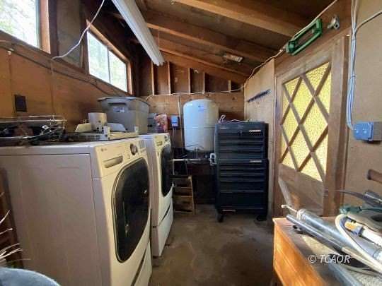 Charming 1-bedroom, 1-bath cabin on 5 acres offering classic mountain retreat vibes. The home features an extra sleeping loft and a versatile bonus room, providing additional living space. Enjoy year-round outdoor living on the large covered deck. A detached utility building accommodates a washer and dryer setup and houses one of the wells, pressure tank, and generator, with additional space for storage. A second, newer well is located near the two included storage containers. The property offers expansive developed terraces with five metal greenhouse frames and plenty of room for expansion. Existing small animal pens provide a great starting point for your own mini farm. See this one for yourself and you may not want to leave!