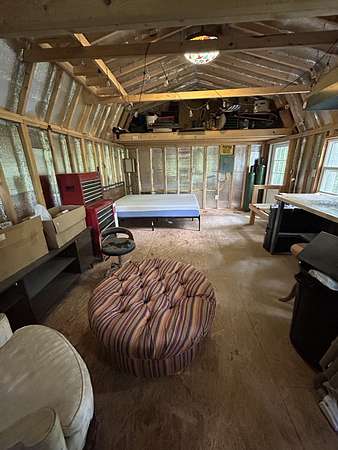 The cabin features newly installed electric (up to code), a ceiling fan, and access to city water and WiFi. City electric meter is already in place. Generator, propane heater, and portable AC all stay.