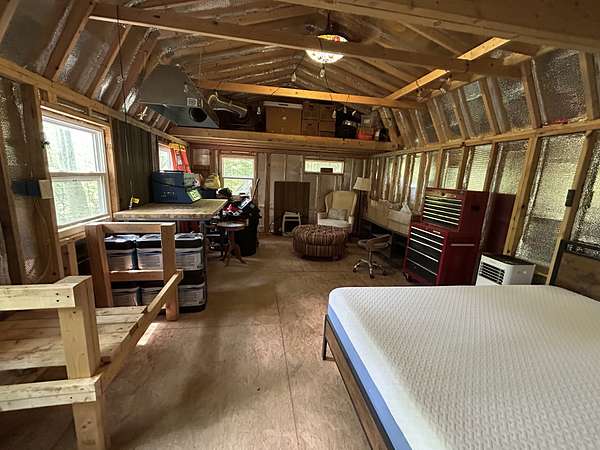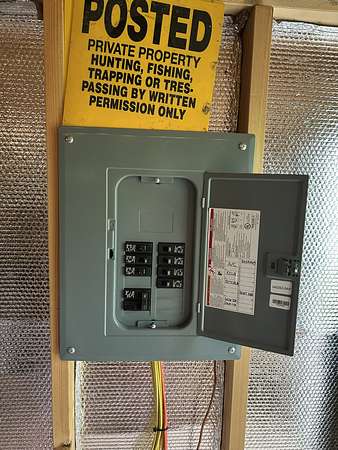 The cabin features newly installed electric (up to code), a ceiling fan, and access to city water and WiFi. City electric meter is already in place. Generator, propane heater, and portable AC all stay.