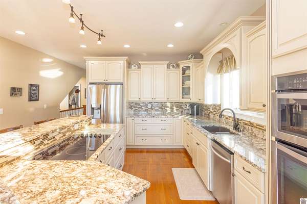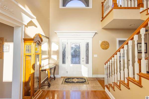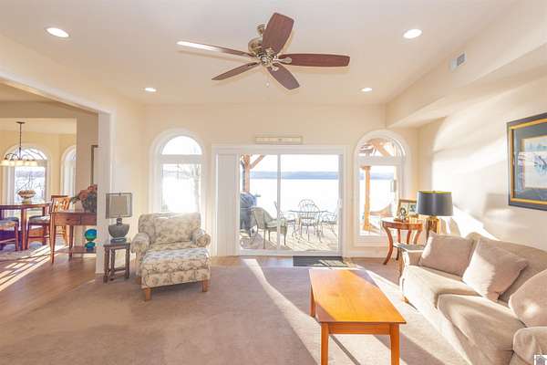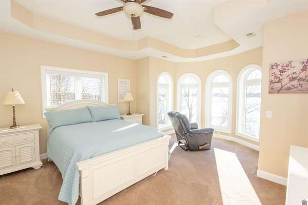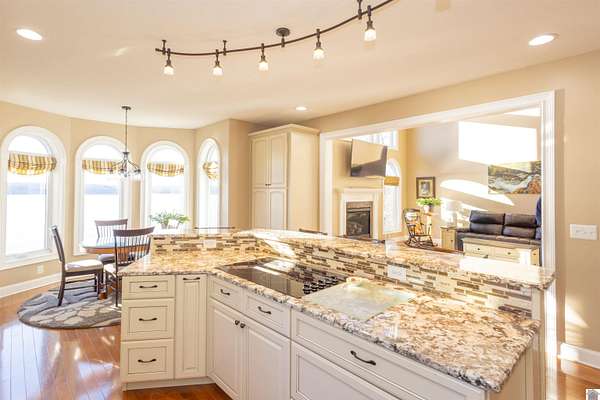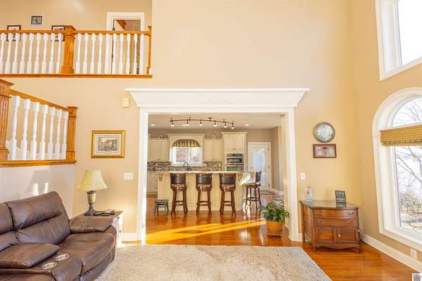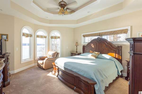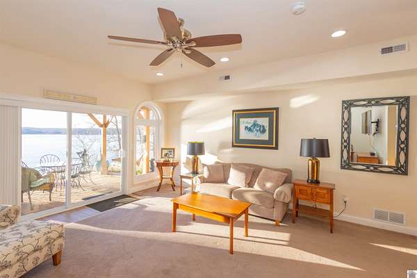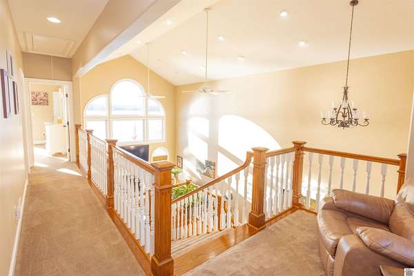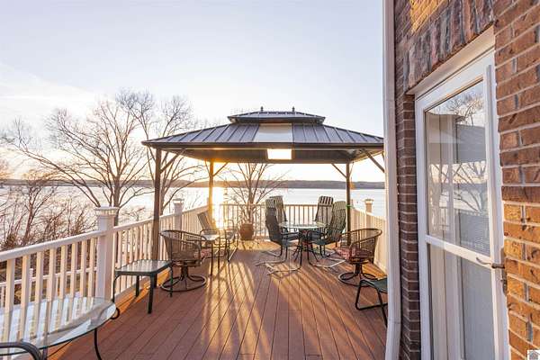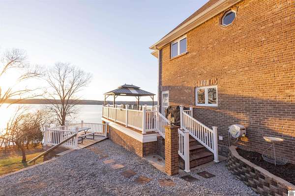 In the words of the home owner ... "Someone is going to get this house for a steal!" This lakefront, custom built home on the main channel of Lake Barkley is INCREDIBLE! With over 5000 square feet of well planned space, bedrooms and bathrooms on all floors, a garage with heat and air, heated floors in the primary bathroom, and more ... the interior of this home is as appealing as the exterior. The fully finished basement provides an additional kitchen, living, and laundry, as well as two bedrooms and a large storage room. The upstairs boasts a bonus room, a guest bathroom and multiple bedrooms. The main level has everything else, including a large ensuite with an amazing view! Outside you'll find multiple outdoor spaces with beautiful views of the lake, and even more beautiful sunsets! Complete with aluminum tech roof shield for higher efficiency, a sprinkler system, a designated slip at the community boat dock, and two additional lots with the property - what more could you desire?