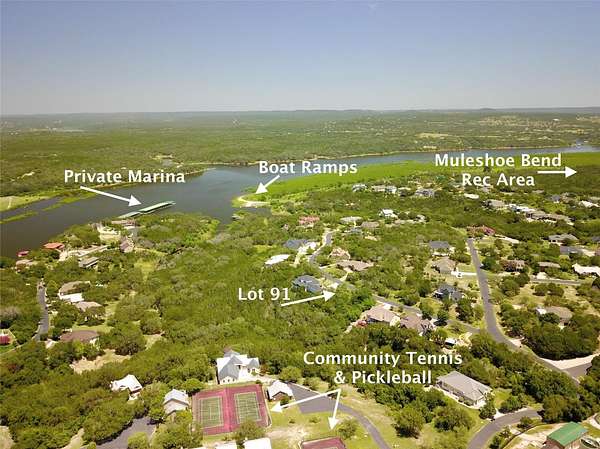 Lot 91 in Ridge Harbor is an ideal opportunity to create your dream home in a gated community along the south shore of Lake Travis in Spicewood, Texas. Just under half an acre with a level build site, the property provides ample space to bring your vision to life. The Ridge Harbor marina, offering privately owned boat slips for purchase or lease when available, is a premier highlight of the community. Residents also enjoy a range of amenities, including a large pool, tennis courts, two private boat launches, and a tranquil waterfront park. Convenience is key, with private water and sewer services already established within the subdivision for easy connection, along with fiber internet and underground utilities. Quality deed restrictions protect your investment, and there's no required timeline to build. With no builder limitations, the flexibility exists to design a custom home of 2,500 square feet or more. Spicewood's appeal continues to grow, attracting homeowners and investors alike with its serene Hill Country lifestyle and proximity to Lake Travis. The area offers easy access to outdoor destinations such as Muleshoe Bend Park, The Grelle, and Krause Springs for hiking, camping, and mountain biking. The community benefits from its close-knit charm, nearby private airstrip (88R), local wineries, golf courses, and shopping. Its location provides convenient access to Austin and the expanding Hill Country region, making it an increasingly desirable place to live and invest. With Thomas Ranch-a new 2,200-acre master-planned community with a vibrant town center, trails, and diverse housing options-Spicewood's growth offers incredible potential for homeowners and investors. With a low tax rate of 1.34%, Ridge Harbor blends affordability, natural beauty, and modern convenience. Discover the charm and potential of Lot 91 in Ridge Harbor. Contact us today for more details or to schedule a tour!