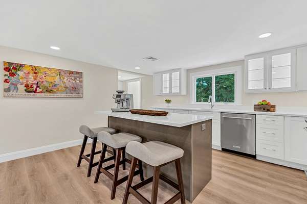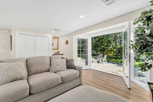 Charming and Elegant best describes this spectacular total renovation in West Harwich. This fabulous home offers a soothing feeling as soon as you step inside. There is a beautiful large living room complete with new large screen TV and built in bookcases. French doors lead to a massive new paver patio with fire pit. A tranquil feeling embraces you being surrounded by nearly 3 acres with conservation land and complete privacy to the rear. Ideal for relaxing or gathering with friends for a BBQ. Back inside a a new designer chef's kitchen awaits with all new Kitchen Aid SS appliances ,quartz counter tops and center island for family gatherings. Two complete ensuites with either walk in shower or soaking tub. Both bathrooms feature beautiful vanities and all new tile. A fabulous laundry room and half bath in the rear complete this renovation. The home has gas heat and central AC for year round enjoyment. This home has been staged by Habitat for Humanity with all brand new furniture and may be purchased turnkey or without the furniture.(Additional $19,000 with Furnishings) The home is immaculate ,stylish and move in ready.