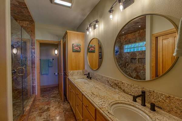 Luxurious Retreat Overlooking Lake Marble Falls Awaits You! Nestled on a sprawling 8.52-acre estate, this 3,167 square foot custom home is a masterpiece of design & privacy, offering unparalleled views of Lake Marble Falls, the Colorado River basin, & charming downtown Marble Falls. Designed for those who seek serenity and privacy, this property is ingeniously integrated into the hillside, providing a secluded oasis that is truly one-of-a-kind. As you enter this magnificent residence, you are greeted by an atmosphere of sophisticated luxury. The upper level serves as the heart of the home, featuring the exquisite primary suite, a formal dining room, a splendid breakfast nook, and a large open living area complete with a cozy stone fireplace. This space is perfect for entertaining or simply relaxing while soaking in the breathtaking views through expansive windows. The sound-proof home theatre promises unforgettable movie nights, while an additional bedroom, a second bathroom, a powder bath, & a well-appointed office complete the upper level. The seamless integration of indoor and outdoor spaces is exemplified by the upstairs balcony, offering an awe-inspiring panorama of the surrounding nature and lake below. Descending into the lower level, you'll find a one-bedroom suite with a full bathroom & a large office space, perfect for work & creative pursuits. The home's design ensures every room captures the tranquil essence of its natural setting. The estate is a haven for wildlife, with fruit and pecan trees