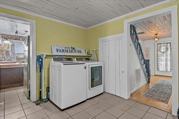 Some places just feel like home! This charming 2-bedroom, 2-bathroom cottage-style house offers a lot to love. The welcoming hardwood floors create a warm tone as you enter the home. On the main floor, you'll find one bedroom, a full bathroom, a laundry nook, a cozy wood-burning stove, and an adorable sunroom just off the kitchen, which also provides great storage. The second floor features a spacious bedroom, a sitting area, and another full bathroom.