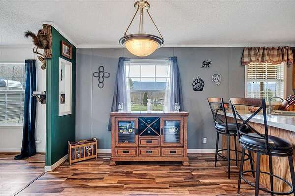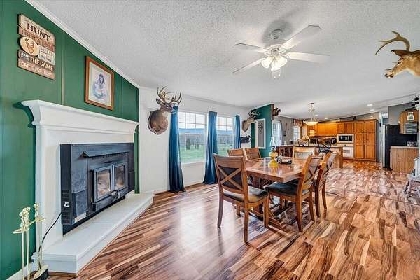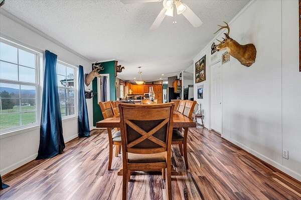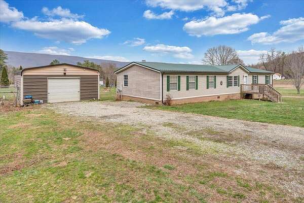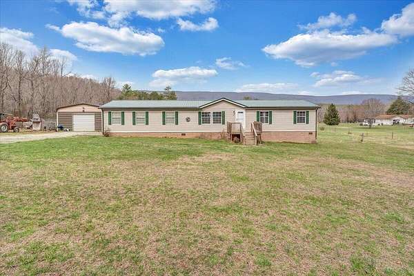 Spacious 4 bed, 2 bath home offering flexible living space with oversized and open floor plan to suit your needs. Split-bedroom layout provides privacy, with an oversized primary suite. Situated on 1.59 flat and cleared acres surrounded by peaceful mountain views. Enjoy stunning sunsets or enjoy your morning coffee on your covered back deck. Includes a 24x40 metal garage, electric fenced area for animals or gardening, and deeded access to Johns Creek. Recent updates include new metal roof, front porch & back covered deck, indoor & outdoor HVAC, updated flooring in main living areas and more. Just 5 minutes from the town of New Castle, this property offers convenience while being immersed in the natural beauty of Craig County, where over half the land is National Forest.