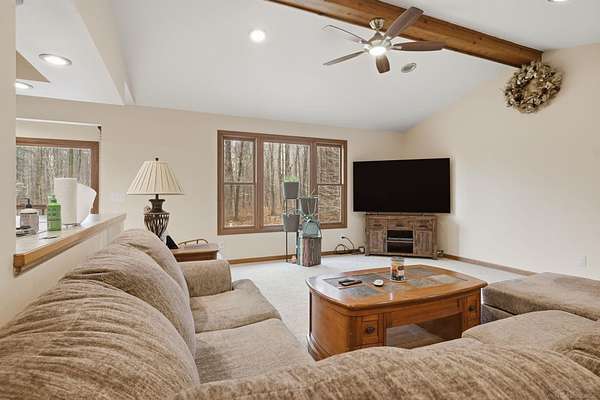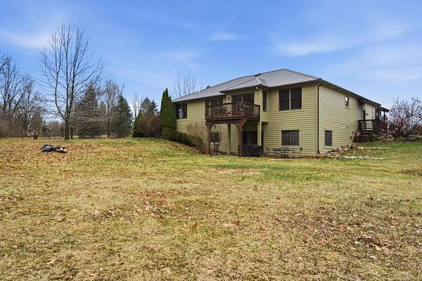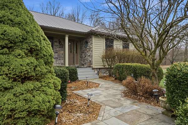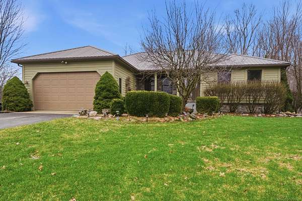 Tucked away on 10 private acres, this gorgeous ranch home offers a rare blend of secluded woodland exploration and modern comfort. Step across the blue slate walkway to a striking stone-front exterior, crowned by a brand-new, durable metal roof. The interior features an inviting open floor plan with vaulted ceilings, where the spacious living room flows seamlessly into a dining area and a bright kitchen with a cozy breakfast nook. The main level hosts three bedrooms, including a serene primary suite, while the tall, fully finished walk-out basement expands your living space with a massive family room, a rec room, and an additional guest room with an egress window. Whether you are relaxing on the lower-level paver patio or wandering the private trails, this estate provides the ultimate sanctuary for nature lovers and entertainers alike. Featured Updates Include: Brand New Metal Roof, Brand new insulation and venting in the attic, Brand new Top of the Line Furnace & A/C, Transferable Lifetime Gutter Warranty, Updated Bathrooms, Updated finished basement!!