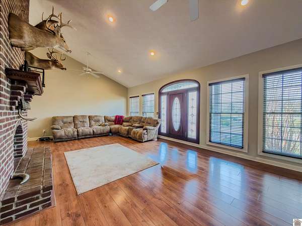 Est $3,061/moWell-maintained single-family brick home situated on 11.48+- acres in Graves County, Kentucky. Built in 1998, this one-story residence offers approximately 2,546 square feet of living space with 4 bedrooms and 3 bathrooms. The home features a custom construction quality, forced-air natural gas heat, and central air conditioning. Exterior amenities include a 2-car attached garage, covered porch, open patio, and a gravel driveway. The property also includes a wood-frame barn (approximately 25' x 30'), providing excellent storage or agricultural use. Additionally, 10'X24' office space with electric. Rural setting with open space, offering privacy and versatility for residential, hobby farm, or recreational use.