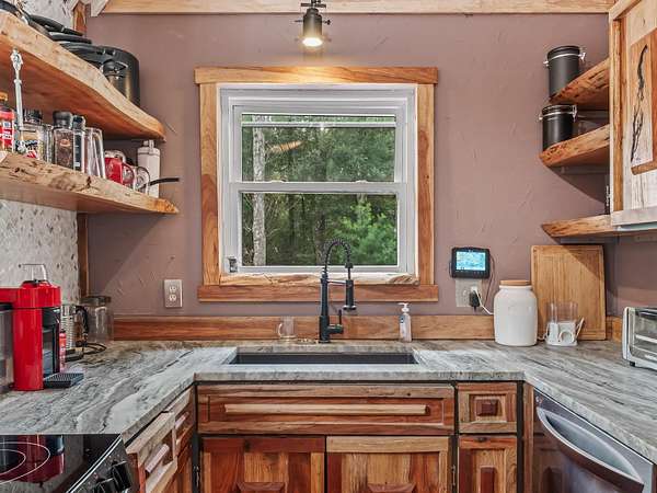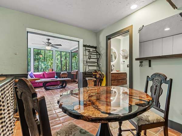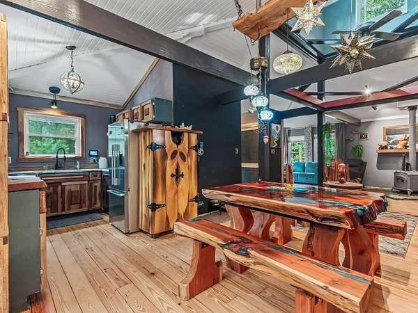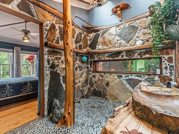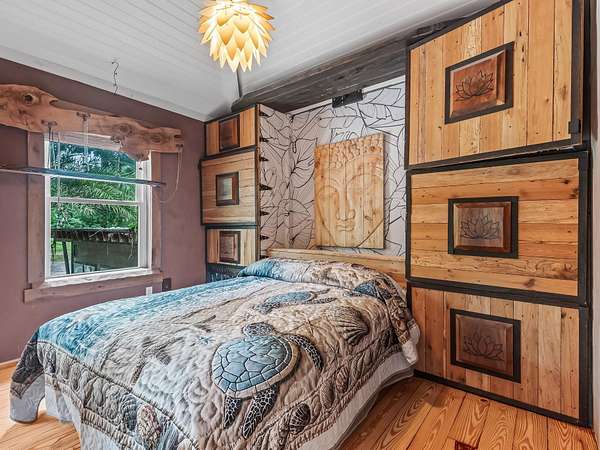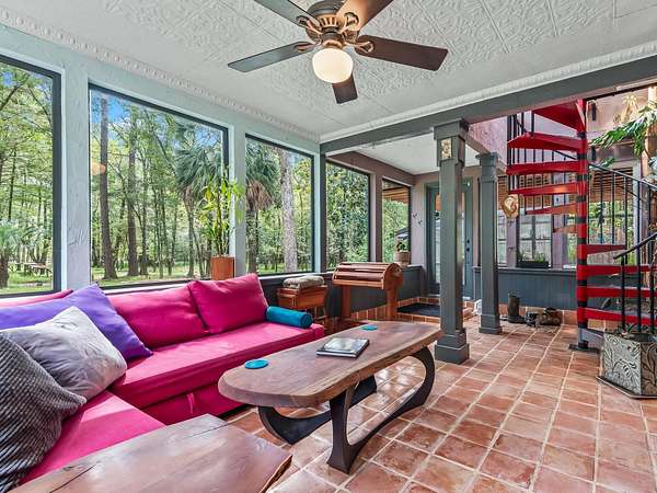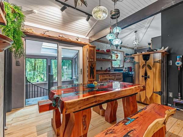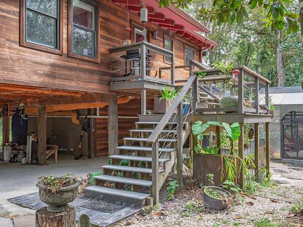 91 St. Marks Rise Rd - Truly One-of-a-Kind Riverfront Property! Experience the best of North Florida living with this rare offering on the St. Marks River. This property creates the perfect blend of privacy, recreation, and opportunity - all just 20 minutes from Tallahassee and only 25 minutes to Crawfordville. The 1,657 sq. ft. two-story home features 2 bedrooms and 2.5 bathrooms, with the potential for a mother-in-law suite on the lower level. Enjoy recently refinished heart pine floors, abundant natural light, and thoughtful touches throughout - including a custom two-person black walnut bathtub. Outdoor living abounds with an upper uncovered deck, lower covered deck, and plenty of space to enjoy the serene surroundings. The property offers three covered parking bays under the home, a river beach with fire pit, and a primitive boat launch, along with vehicle access to the river. A true standout feature is the 300-foot long cable suspension bridge. For those who love to work, build, or create - the property includes a 656 sq. ft. woodshop with power and mini-split system. There's also electric and water at the river dock. Homesteaders will appreciate the chicken coop, greenhouse with water and electric, firewood storage, and excellent well water with a booster pump for great pressure. This property truly has it all - a perfect retreat for nature lovers, artists, and anyone seeking a private lifestyle surrounded by beauty and function.