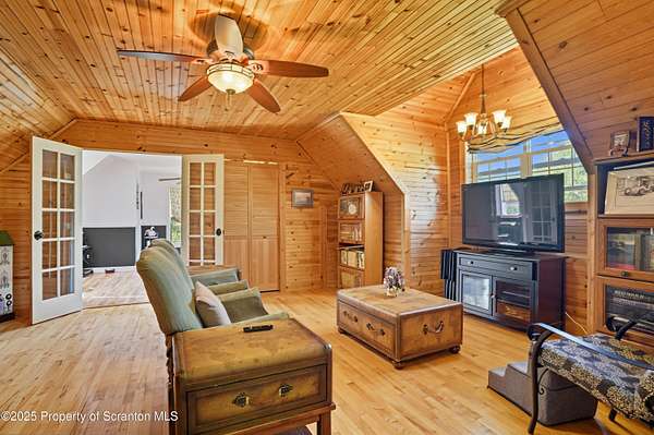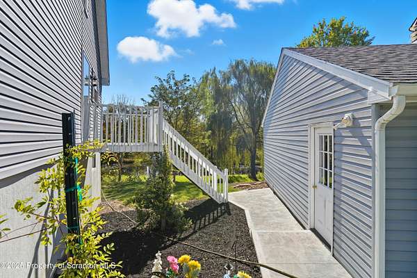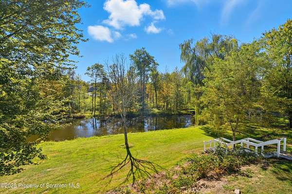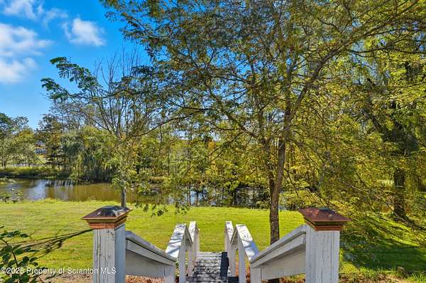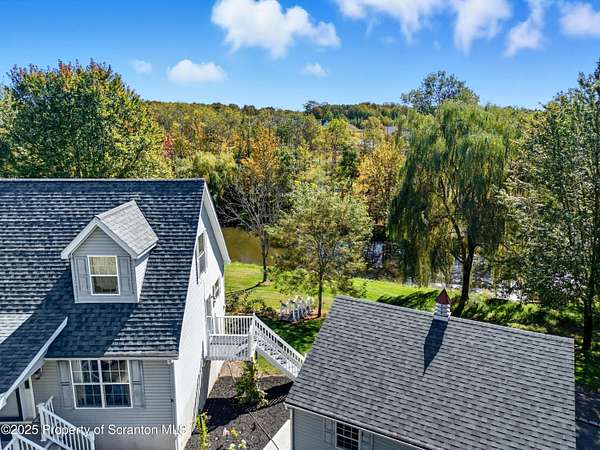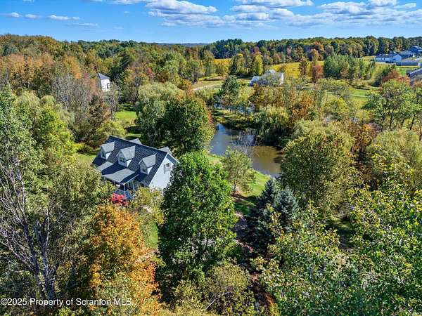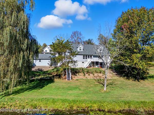 Enjoy serene views of the amazing pond from most rooms in this charming Cape Cod-style home, perfectly situated on 4.2 acres of natural beauty. The spacious eat-in kitchen features an oversized island and flows into the formal dining room, ideal for gatherings. The first floor offers a primary bedroom plus an additional bedroom for convenient one-level living. Upstairs, you'll find two more bedrooms and a family room with French doors, providing the perfect retreat.The walk-out lower level offers excellent potential for finishing to suit your needs. A 2-car detached garage, additional 1-car garage, and a separate storage building provide plenty of space for vehicles and equipment. A unique outbuilding with a screened room creates the ultimate spot for entertaining or simply relaxing while taking in the peaceful setting. Roof 2023, whole house generator.