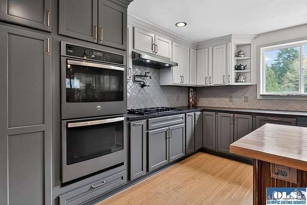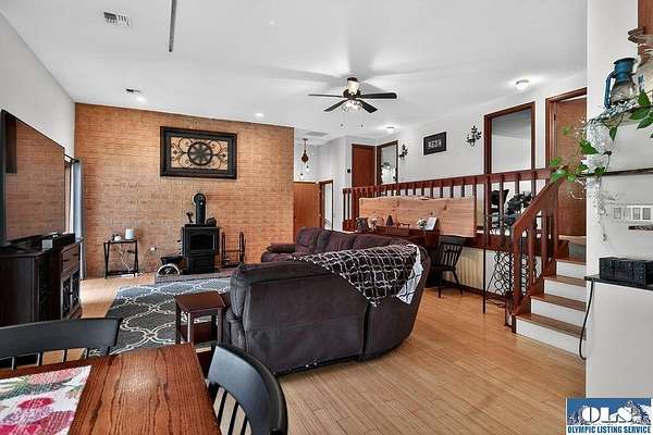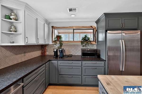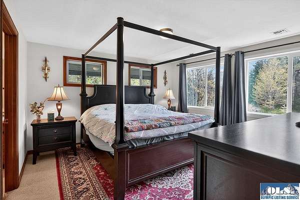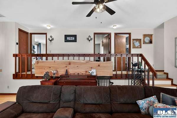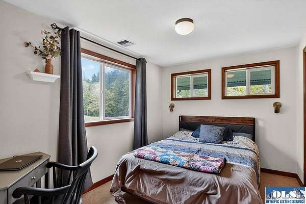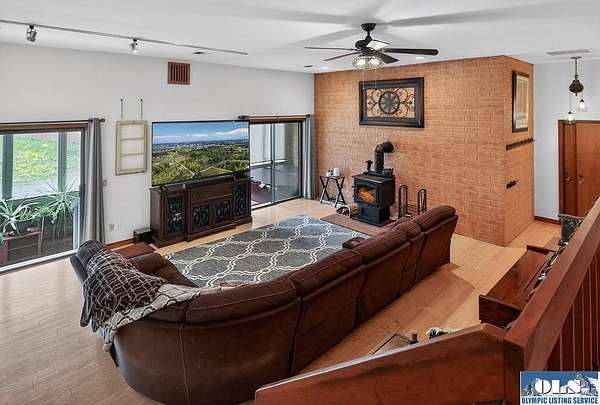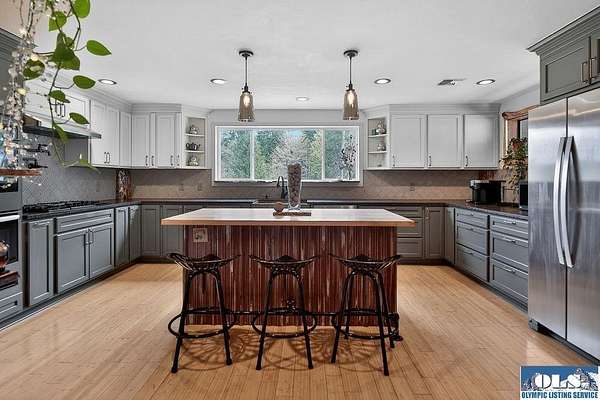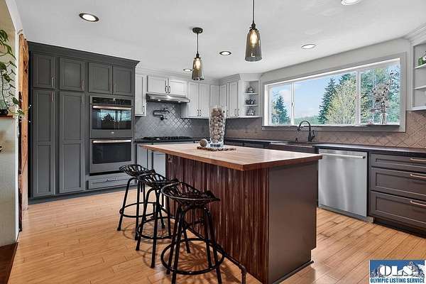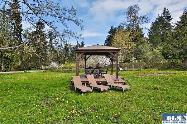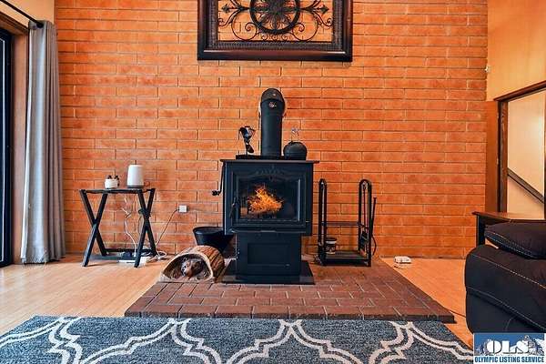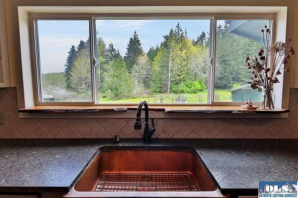 Welcome to your private retreat! This beautifully appointed 3-bedroom, 2-bath home sits on 7.87 serene acres surrounded by mature cedar, fir, and alder trees, with winding trails to explore right from your doorstep. Enter through the inviting sunroom and into a stunning living space featuring 10-foot ceilings and a cozy Blaze King wood stove—perfect for staying warm all winter long. The gourmet kitchen is a true centerpiece, complete with a propane range, double oven, convection oven, walk-in pantry, butcher block island, on demand hot water with filter, leathered granite countertops, and abundant cabinetry for all your storage needs. Bamboo flooring adds warmth and style throughout the main living areas. Downstairs, you’ll find a versatile hangout space along with additional storage. Outside, the property shines with two RV pads with hookups, a 2-car garage, and a thriving orchard producing apples, plums, pears, cherries, blueberries, and raspberries. Enjoy peace of mind with newer windows and a durable metal roof. This unique property offers the perfect blend of comfort, functionality, and natural beauty—ideal for those seeking space, privacy, and a connection to the outdoors.