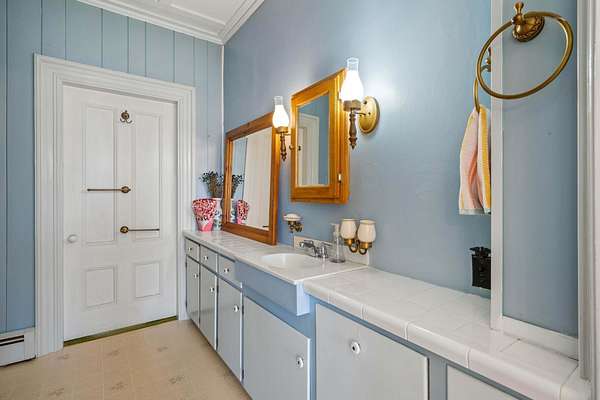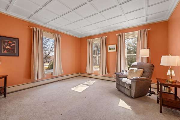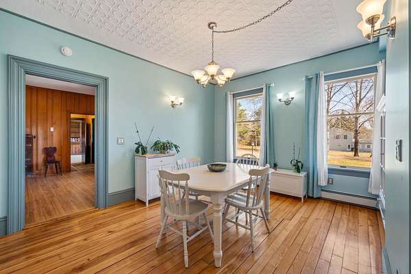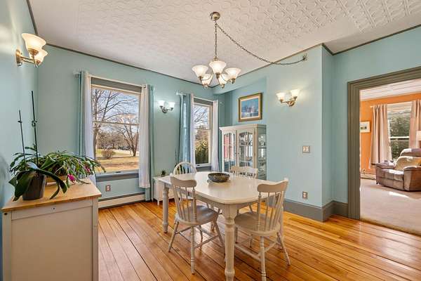 This Iconic Colonial, known locally as the Schoenthaler Homestead, with 5 bedrooms, 3 full baths, and nearly 4,000 sf of finished living is set high on a pastoral 2.43-acre parcel. This charming home is conveniently located near Thomas College, next to the Pine Grove Municipal Golf Course, the shopping at JFK Mall, and all that Downtown Waterville has to offer. A circular driveway begins the peaceful transition that coming to this home creates; and, throughout the home, spacious rooms with high ceilings and tall windows contribute to the comfort and ease. The easterly-facing covered side porch welcomes you and is the perfect location to sit outside and greet each new day. A grand eat-in-kitchen that runs the width of the house features a walk-in pantry, a first-floor laundry closet, and a cleverly disguised 2nd stairway. At the back of the home is a handsome family room that features a bay window, built-in bookshelves and a brick hearth fireplace; and an attached full bath off this room allows it to easily serve as guests' quarters or a home office to greet clients. The sun-filled formal dining room showcases original tin ceilings and wood floors. Three spacious rooms at the front of the home (with a Jack and Jill bath) could all serve as bedrooms, or as the current owner has it set up with one bedroom, an office, and a den. Currently zoned as a multi-unit, the owner has removed an interior dividing wall in the front hall stairway to return this area of the home to its original grandeur. The second-floor apartment includes a formal dining room, an eat-in-kitchen with its own a walk-in pantry and laundry area, and stairs to the walk-up attic. This floor also features a full bath and three spacious flex rooms at the front of the home that could serve as bedrooms, office, den or some combination thereof. Need more storage space? The three-car garage with auto door openers offers a walk-up attic. Schedule a showing today to make this gem of a home your own.