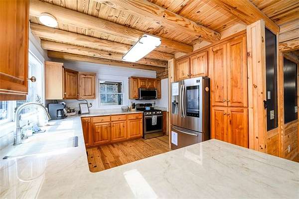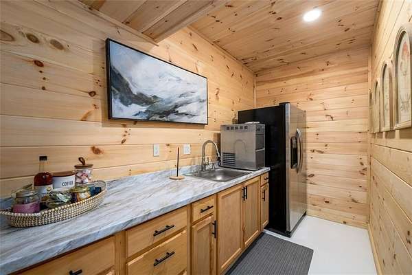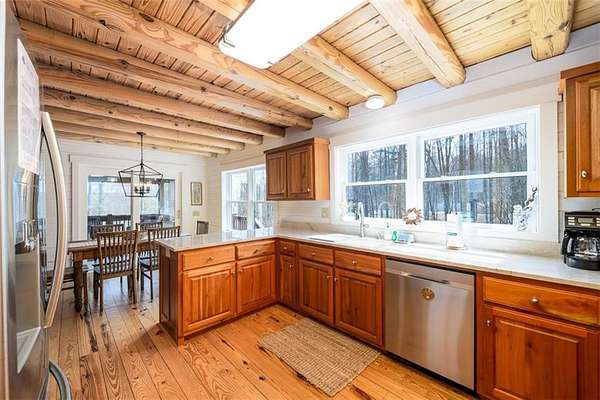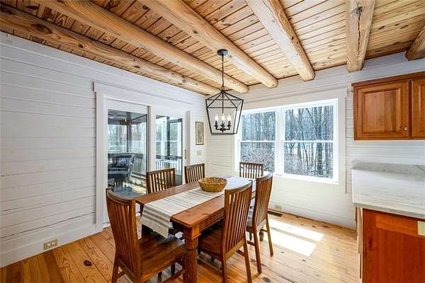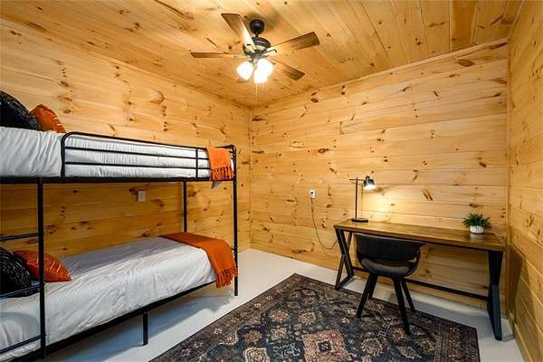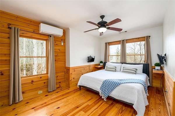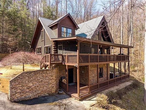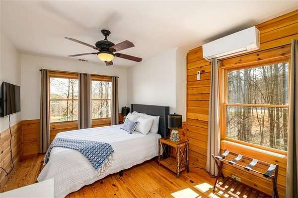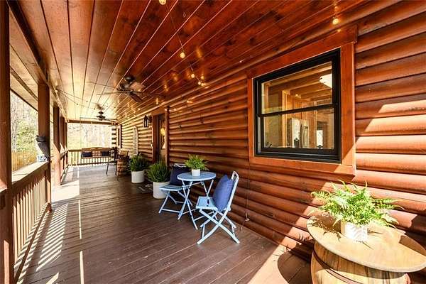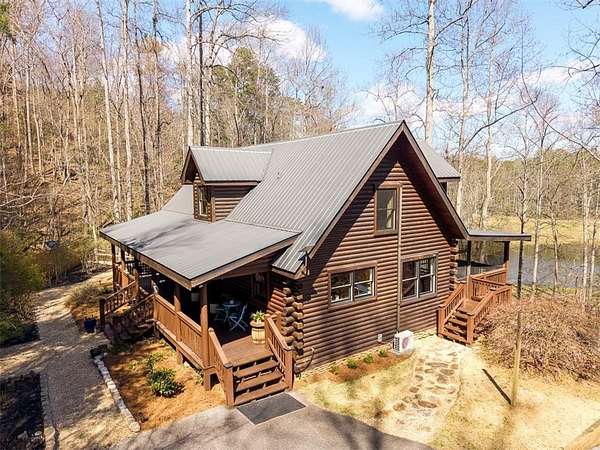 Nestled in the Blue Ridge Mountains and less than 10 minutes from downtown Blue Ridge, this beautiful cabin offers the perfect getaway for those looking to slow down and enjoy the mountains-without a long drive from metro Atlanta. This 3-bedroom, 3.5-bath home also features a spacious bonus bunk room in the basement, making it ideal for hosting family and friends. The main living area is filled with natural light, with large windows that showcase peaceful views of the shared lake and surrounding trees. The open kitchen and family room create a warm, inviting space to gather, whether you're enjoying a quiet weekend or making lasting memories together. The terrace level has been thoughtfully updated with new flooring and a recently renovated full bathroom, now featuring a glass shower door added after photos were taken-adding both comfort and style to the space. One of the standout features of this property is the detached two-car garage, a rare find in the Blue Ridge area, offering ample space for parking, storage, or all your mountain gear. Step outside and take in the peaceful setting-this home truly feels like a quiet escape, tucked into the mountains with a serene lake view shared with neighboring properties. Whether it's morning coffee overlooking the water or evenings unwinding after a day in town, this is a place to recharge. Currently used as a rental property, this home also offers flexibility-when your family isn't enjoying it, it provides a great opportunity to share it with others.