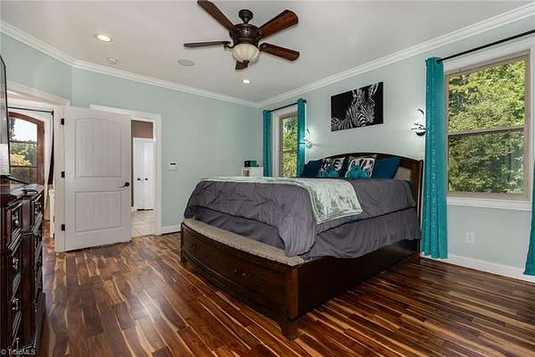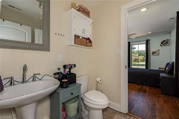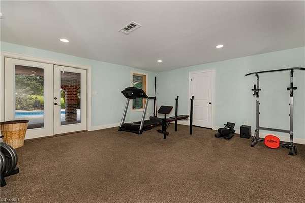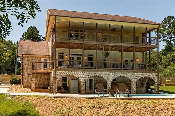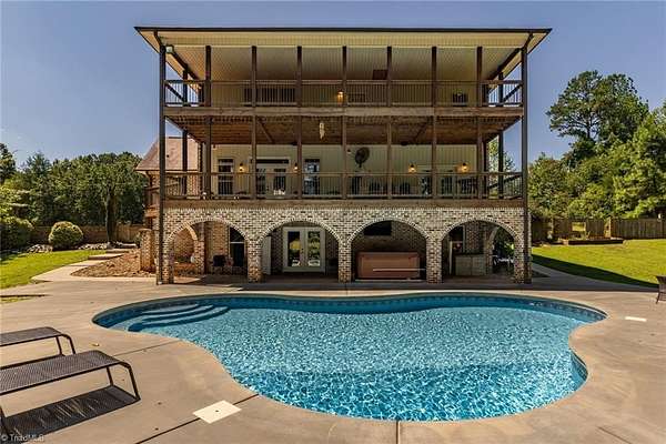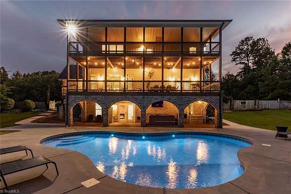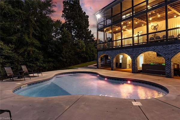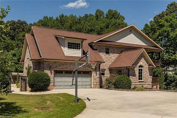 Absolutely STUNNING all-brick estate in Northern Davidson Co! This 4BR, 4.5BA, 5101 SF home on nearly 2 acres offers 3 levels of living & inground lighted pool. An entertainer's dream home! Main-level primary suite w/ tiled double shower, dual vanities, & his/hers closets (one w/ custom shelving). Granite kitchen w/ stainless steel appliances opens to dining & den. Upstairs: 2 BRs + huge bonus room w/ kitchenette & add'l den--ideal for teens, guests, or 2nd living space. Lower level: 1 BR, 1 full BA, man cave (pool table conveys), & exercise room. Two balconies span the home with wooded views, plus a covered patio with hot tub & ice bath remaining. Large lot behind house with trampoline, firepit, storage building, and city light pole for nighttime playing! Expansive driveway + 2-car garage. Leaf Gutter Guards. Private feel, yet convenient to Welcome, Lexington & Winston-Salem. North Davidson School District. Agents: See remarks and additional info attachment for items to convey.